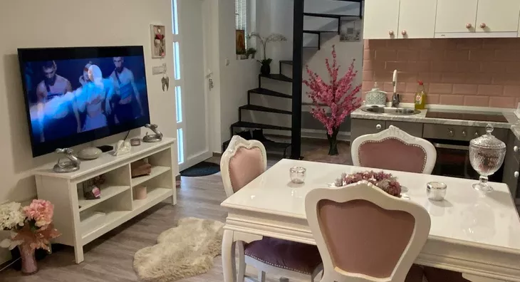 Prodaje se sređena dvojna kuća u strogom centru grada. Kuća je podeljena na dva stana, i raspored prostorija je isti. U prizemlju se nalazi dnevni boravak sa kuhinjom i trpezarijom i kupatilo ( ukupne površine 35m2), zatim se unutrašnjim stepenicama dolazi do potkrovlja gde je smeštena spavaća soba i kupatilo. Oba dela kuće se prodaju i imaju isti raspored prostorija. Prvi deo je opremljen stvarima, drugi je prazan.