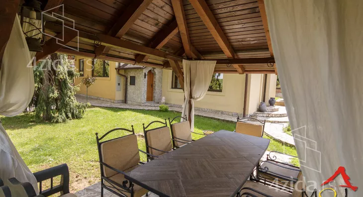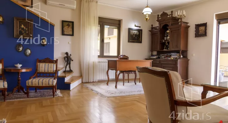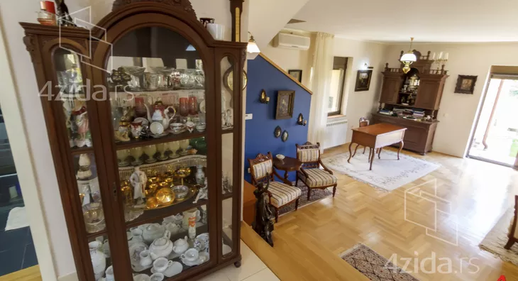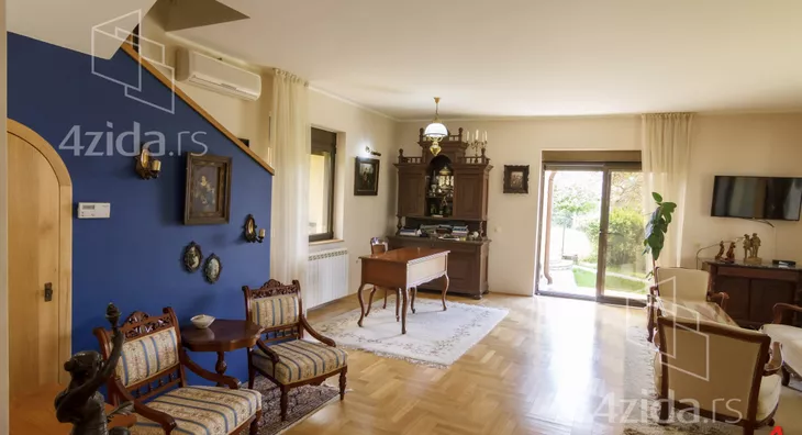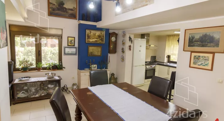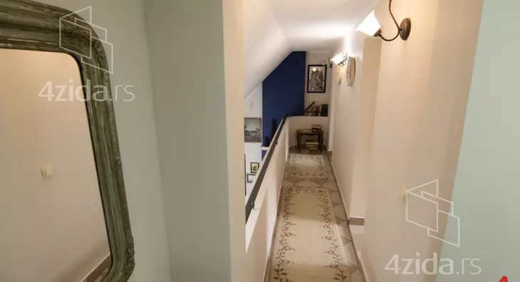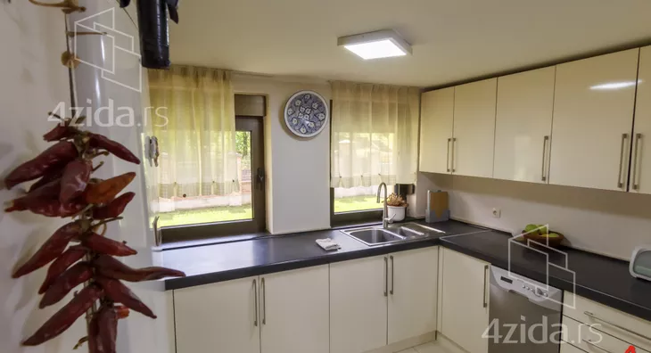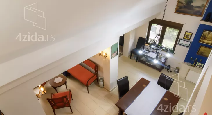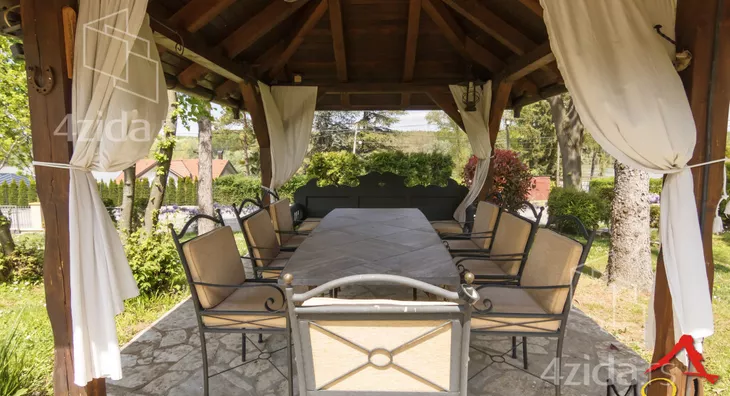 The main and accompanying buildings on over 200m2 are exceptionally well-built and luxuriously equipped. The owners, in collaboration with an architect, made an effort not to disrupt the form of the existing landscape architecture during construction. The plot spans 1400m2 and offers great opportunities, such as for a jacuzzi, fountain, greenhouse, and other additional structures according to personal preferences. The main building is a three-bedroom house on two floors. The first floor consists of a kitchen and dining room that are spatially connected and a sitting area with a view of the park in front of the house. The other part of the ground floor is a living room that is separated by a few steps from the kitchen-dining area. The living room opens onto the yard through a glass portal and is illuminated by many windows. The living room is equipped with beautiful antique furniture, adorned with a wood-burning stove and many details that you simply must see. Upstairs is a gallery with two bedrooms, a toilet with a laundry room, and a terrace that runs along the entire floor overlooking the yard of the house. The floor is of the gallery type, so almost the entire ground floor can be seen from upstairs. In the yard, there is a summer house with a summer kitchen, an outdoor barbecue, a large garage for cars, and space behind the house for a beautiful pool if future owners want to(Moj Dom nekretnine, Novi Sad, Reg.br.174)