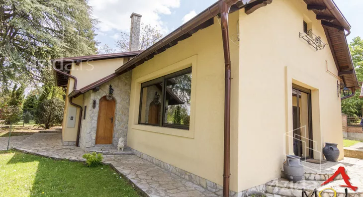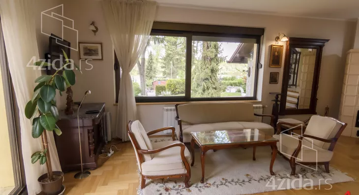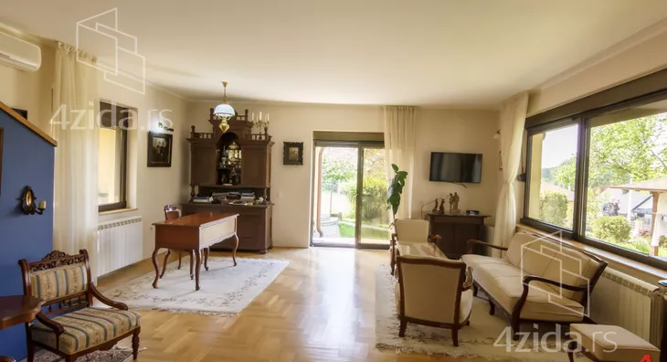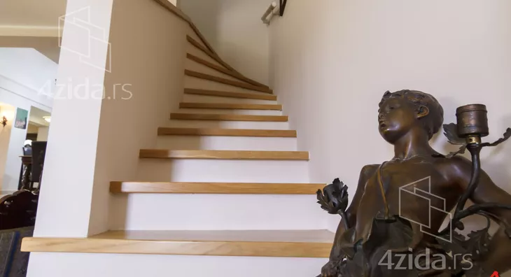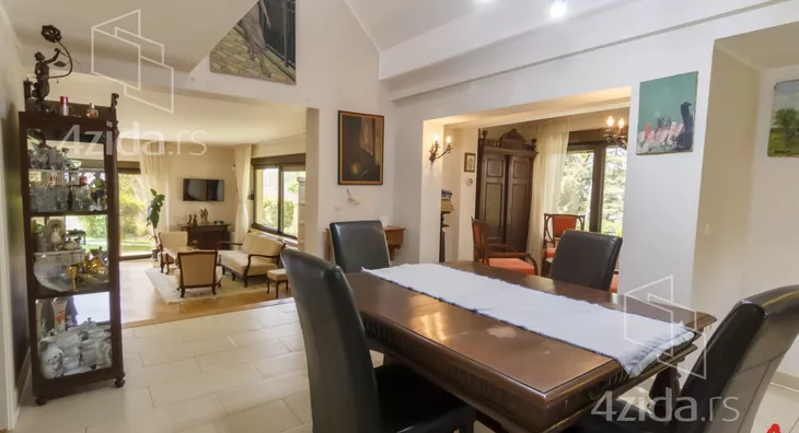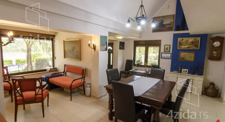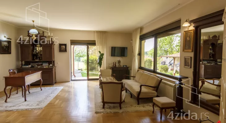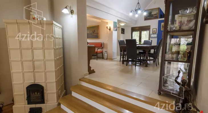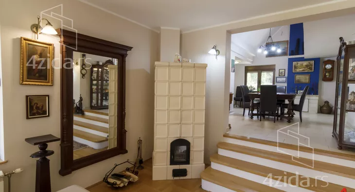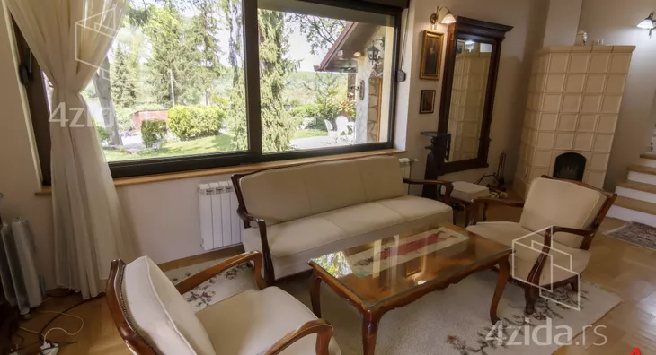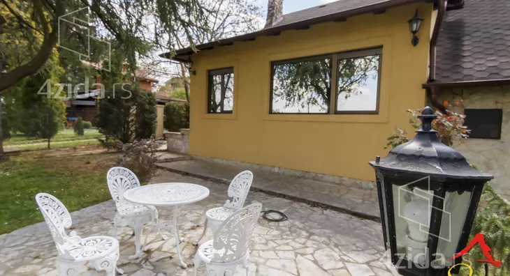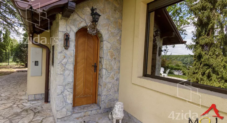 Glavni i prateći objekti na preko 200m2 su izuzetno kvalitetno građeni i luksuzno opremljeni. Vlasnici, u saradnji sa arhitektom, su se trudili da prilikom izgradnje ne naruše formu već postojeće pejzažne arhitekture. Plac se prostire na 1400m2 i pruža velike mogućnosti, npr. za đakuzija, fontane, staklenika i drugih dodatnih objekata prema ličnim afinitetima. Glavni objekat je trosobna kuća na dve etaže. Prva etaža se sastoji od kuhinje i trpezarije koje su prostorno spojene i separea za druženje sa pogledom na park ispred kuće, drugi deo prizemlja je dnevni boravak koji je izdvojen tako što se silazi par stepenika sa kuhinjsko trpezarijskog dela. Dnevni boravak izlazi na dvorište staklenim portalom i osvetljen je sa puno prozora. Boravak je opremljen prelepim stilskim nameštajem koga krasi kaljava peć na drva i puno detalja koje prosto morate pogledati. Na spratu je galerija sa dve spavaće sobe toaletom sa vešerajem i terasom duž celog sprata koja gleda na dvorište kuće. Sprat je galerijskog tipa tako da se sa sprata vidi gotovo kompletno prizemlje. U dvorištu je letnjikovac sa letnjom kuhinjom, roštilj na otvorenom, velika garaža za kola i iza kuće ima prostora za lep bazen ako budući vlasnici žele da ga naprave.