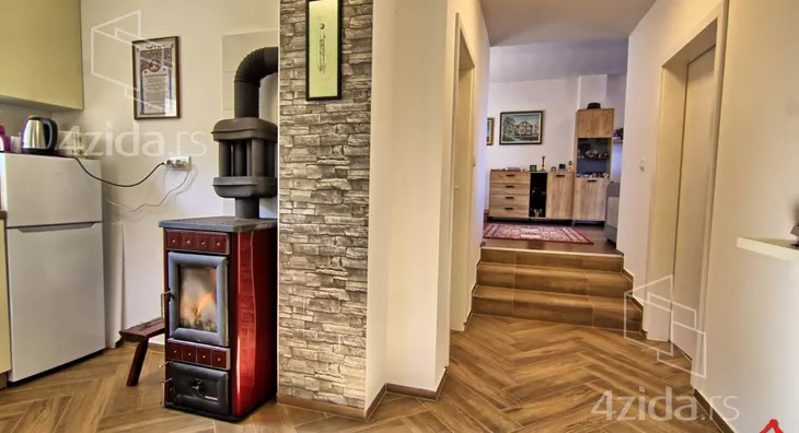 Sama kuća u svom spratnom delu sadrži kuhinju sa trpezarijom (u kojoj postoji peć na tvrdo gorivo za ljubitelje pucketanja žive vatre), prostranu dnevnu sobu, spavaću sobu i kupatilo, dok se u donjoj etaži nalaze letnja kuhinja, toalet i jedna velika prostorija u trenutnoj funkciji ostave.