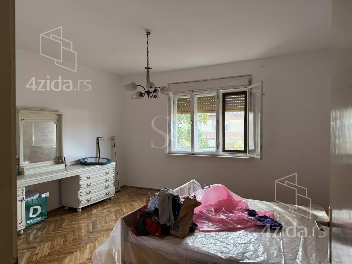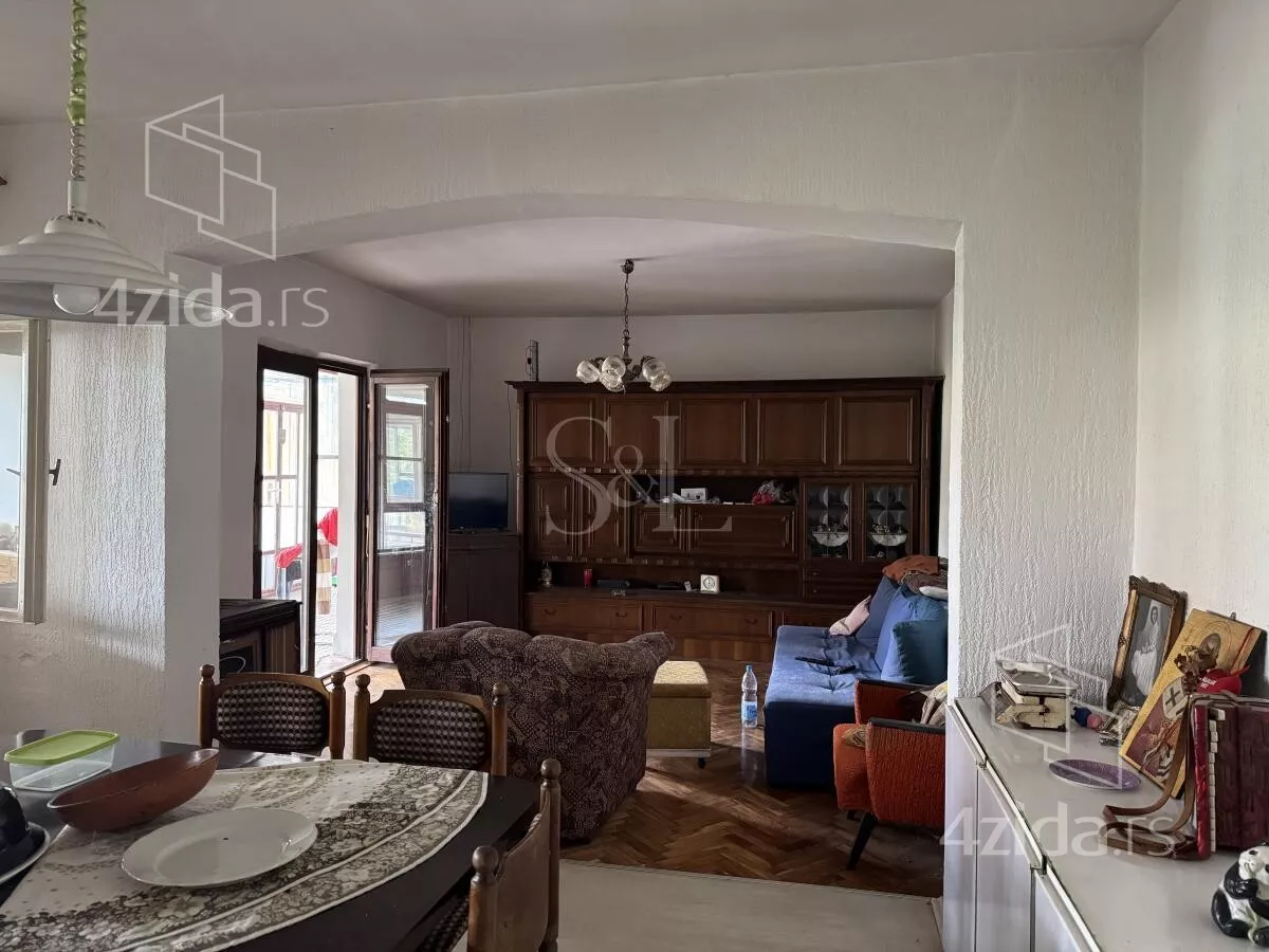 KUĆA! ČONOPLJA! Na brežuljkastom delu sela,u mirnoj ulici,a nadomak centra,nalazi se kuća od 170m2,prizemna tipska kuća,od čvrstog materijala,sa tri spavaće sobe,dnevnim boravkom otvorenog tipa gde su i kuhinja i trpezarija,sve ovo je povazno velikim ustakljenim "gongom" ili zatvorenom terasom,odajle se može i u podrum,u pomoćne prostorije,letnju kuhinju.Kuća se slabo koristi ali je u veoma funkcionalnom stanju,drvena stolarija,parket,kupsatilo u izvornom stanju,celu kuću treba osvežiti,nešto zameniti,ali u osnovi je to dobar temelj za prelepu porodiču kuću.