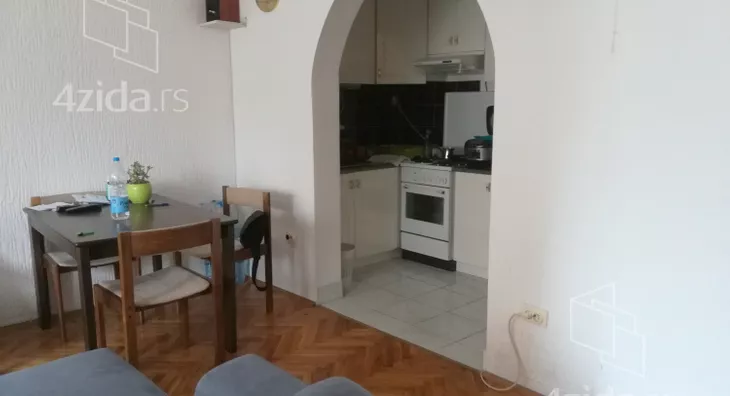 Prostorije: ulazni deo, dnevni prostor, kuhinja sa trpezarijom, kupatilo, ugrađeni plakari u ulaznom delu hodnika.