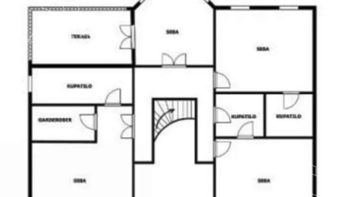 Prostorije: salon, dnevni boravak sa trpezarijom, kuhinja, spavaći blok sa četiri spavaće sobe (svaka ima kupatilo) od kojih je jedna master soba sa garderoberom i kupatilom. U donjem nivou se nalazi prostorija za bilijar, sauna i prostorije za ispomoć, vešeraj i grejanje.