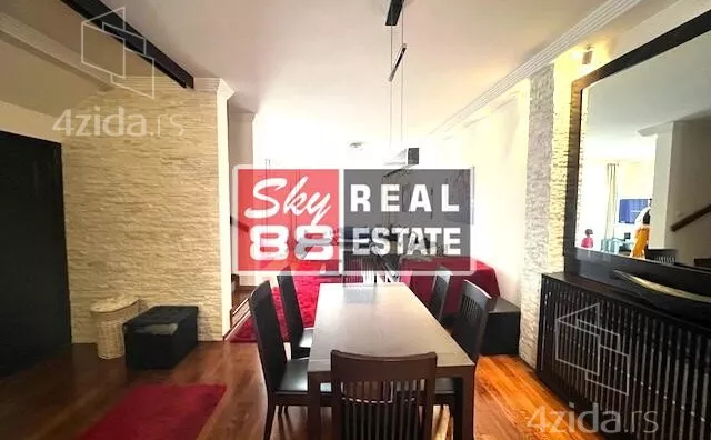 5,0 Savski Venac, Beli dvor, Diane Budisavljevic, 288m2 ( 129m2 uknjizenog stambenog prostora i 67m2 uknjizenih u polusuterenu u funkciji garaze i teretane ), eg ( gas/struja ), VPR + I + PTK + PSUT, odlicna kuca u nizu ( na placu ukupno 5 kuca ), vrlo kvalitetna gradnja 2008.godine, u izuzetno dobrom stanju, odrzavana, dvostrano orijentisana sever - jug, mirno okruzenje, drvo stolarija, hrast I klase, video nadzor, uknjizena, opciono namestena. Struktura: VPR - ulazni hodnik, prostrani dnevni boravak sa trpezarijom, kuhinja, kupatilo, terasa, izlaz u dvoriste... I - dve spavace sobe ( izvorno 3 spavace sobe ), kupatilo, terasa... PTK - open space koncept, velika zastakljena lodja... PSUT - ostava, garaza za dva velika automobila, teretana, kuhinja, kupatilo...Dodatno parking mesto ispred garaze... Idealna kako za stambeni tako i za poslovni prostor! Agencijska provizija 2%