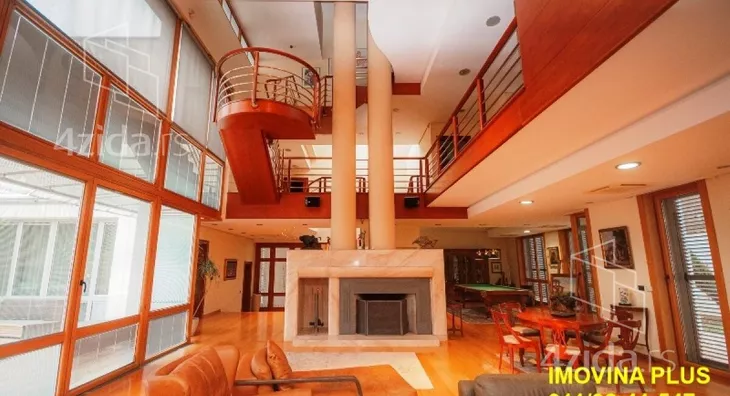 Эксклюзивная недвижимость в исключительном месте. Современное архитектурное решение с оттенком классики в интерьере. Огромная гостиная, в которой доминирует большой мраморный камин. Вдоль всей гостиной расположены большие окна, с видом на сад. Также есть и бильярдный зал. Большая кухня и столовая, пространство, предназначенное для отдыха (меньшая гостиная), ванная комната и гардероб. Из гостиной лестница ведет в галерею с рабочим кабинетом. Четыре спальни, каждая со своей ванной комнатой и две с отдельным гардеробом. На третьем уровне находится помещение, предназначенное для кинопоказа (кино) с выходом на красивую террасу. В нижнем уровне расположены подсобные помещения, отдельная квартира (предназначена для прислуги), просторный гараж на две машины + три гаражных места во дворе. В доме также есть СПА-центр и большой крытый бассейн глубиной 2 м.