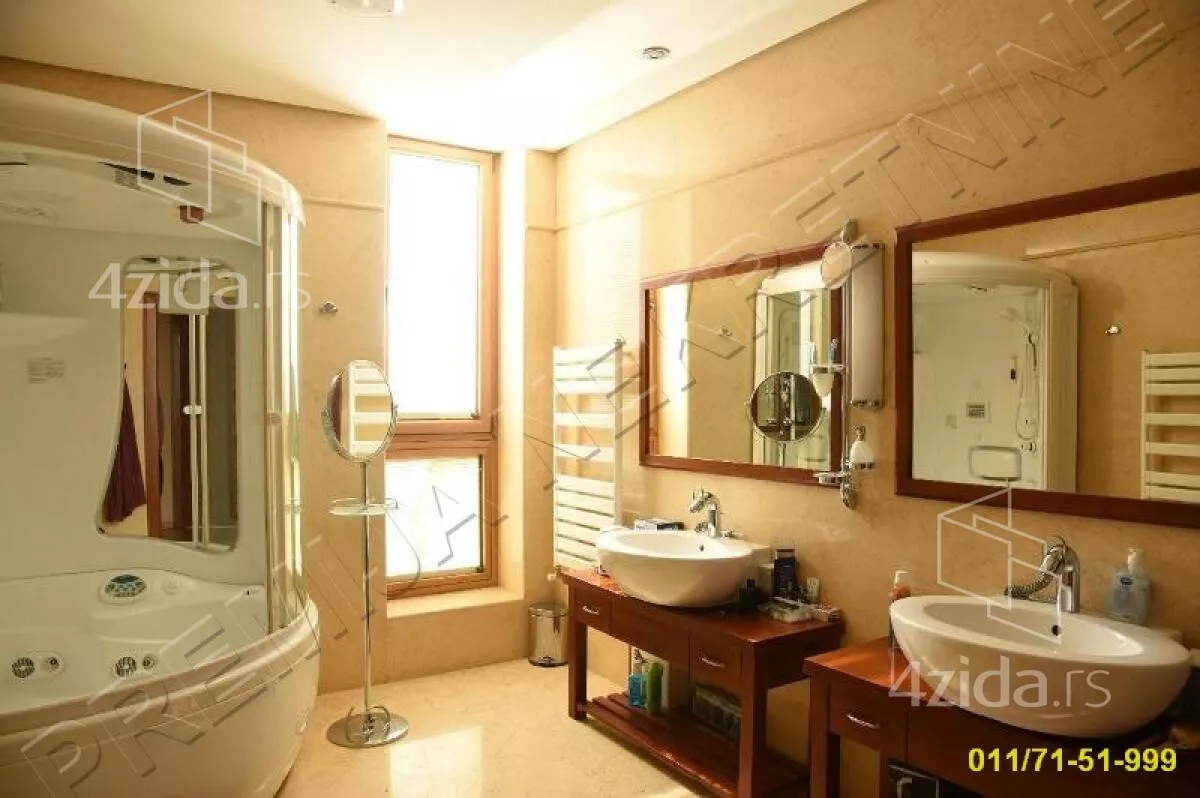 Na prestižnoj lokaciji u ponudi LUX vila izrađena od najkvalitetnijeg materijal. Ima više spavaćih soba, veliki dnevni boravak sa kaminom, trpezariju i kuhinju. Opremljena je novim kvalitetnim nameštajem. Oko kuće je uređeno kultivisano dvorištem, bogato zelenilom površine 11 ari. Unutrašnji bazen, garaža sa 4 parking mesta i dva parking mesta spolja. Za sve dodatne informacije pozovite agenciju.