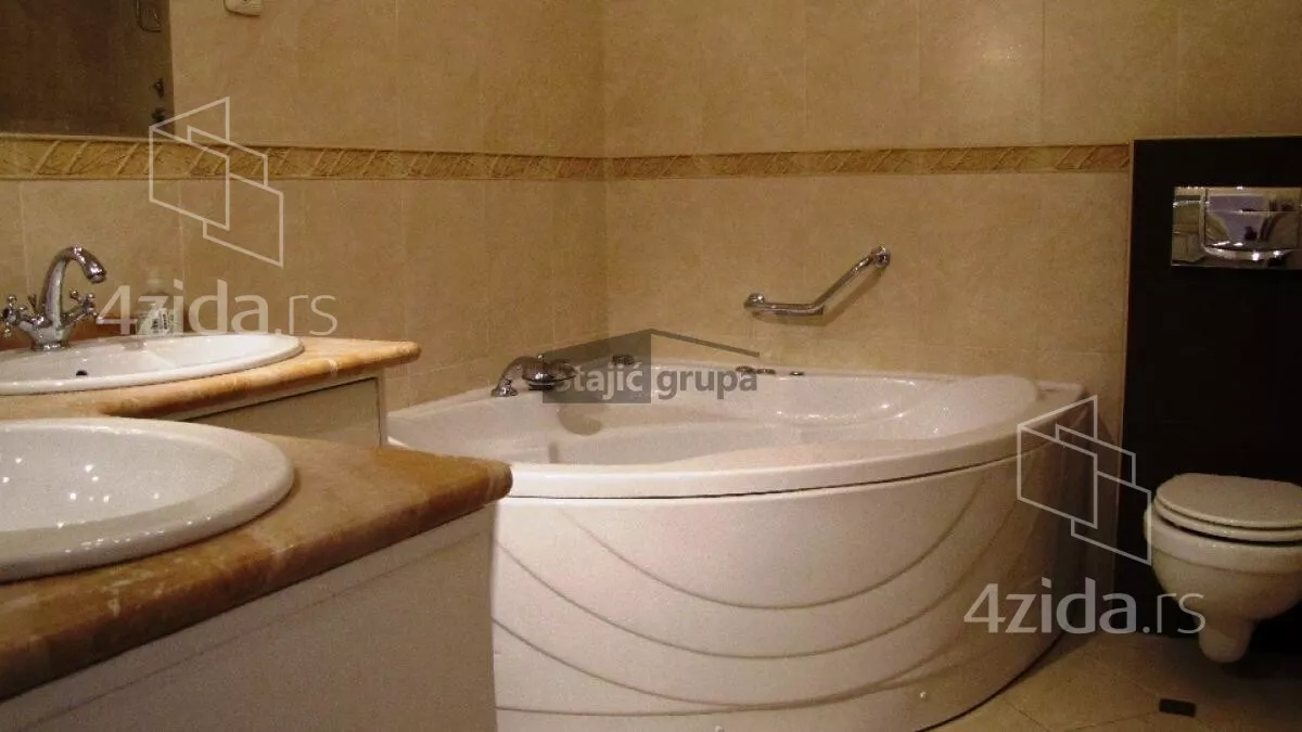 Visoki kvalitet gradnje, luksuzno opremljena kuca od 215m2, uknjiženo 119, 3 nivoa, garaza za 2 automobila, 4 spavace sobe, 4 kupatila sa podnim grejanjem, jacuzzi kada, 2 kuhinje, 2 dnevna boravka, radna soba, 2 terase, perionica, ostava, kotlarnica-grejanje na gas i na struju, 2tel. linije, video nadzor, alarm, kablovska i SAT, lepo uredjeno, zasebno dvoriste iza kuce od oko 100 kvadrata..