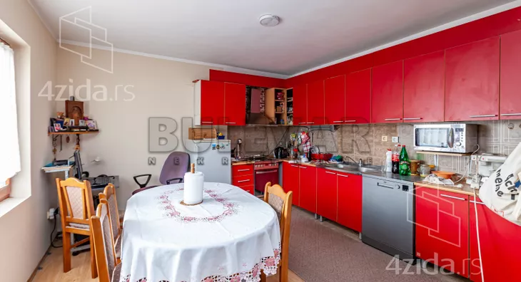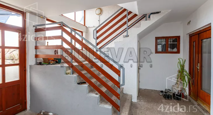 Prodaje se samostojeća kuća prizemelje, sprat i potkrovlje na parceli 382m2 u Donjoj Vrežini. Kuća je bruto uknjižene površine 295m2. Prizemlje se sastoji od garaže i stambenog dela koji čine velilka dnevna soba sa kuhinjom i trpezarijom, spavaća soba, hodnik i kupatilo. Ispod stepeništa je ukopan manji podrum. Drugi sprat čini druga stambena celina, koja je u funkciji trosobnog stana i velike terase, ovaj sprat ima neto korisnu površinu 93m2. Potkrovlje je u sivoj fazi gradnje korisne površina je 68m2. Kuća se nalazi na odličnoj lokaciji u blizini OŠ Miroslav Antić. Ulaz kuće je prema istoku, pozicija kuće je takva da je najveći deo dvorišta ispred kuće, mogće je organizovati letnjikovac i zelenilo, a kuća je udaljena od ulice, obezbeđujući miran porodičan život. Iza kuće postoji radionica montažnog tipa oko 30m2. Kuća je ozakonjena tako da je moguća kupovina i putem stambenog kredita.