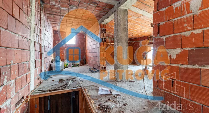 Prodaje se porodična kuća u Donjem Vlasu korisne površine 200m2. Parcela na kojoj je kuća je 820m i na delu parcele je zasad vinove loze. Kuća je dvoetažna, prvi sprat je useljlv a drugi je u sivoj fazi gradnje. Na ulazu u kuću je trem na koji se direktno izalzi iz dnevne sobe. Ova prostorija je u isto vreme trpezarija i kuhinja i velike je pvoršine skoro polovine osnove. Na polunivou, na nekoliko stepenika je izdvojeno kupatilo dve spavaće sobe i terasa. Ispod stpeništa za gornji sprat je prostorija koja predstavlja ostavu. Gornji sprat takodje čini jedna višenamenska velika prostorija sa velikiom terasom , i jos jedanm prostor gde su predvidjene dve spavaće sobe i kupatilo. Ispod kuće je podrum kirisne površine 24m2,ulaz je sad zadnje strane. U dvorištu takodje postoji i pomoćni objekat ili garaža od 18m2. Kuća je legalizovana kao i pomoćni objekat. Vlasništvo je 1 kroz 1.