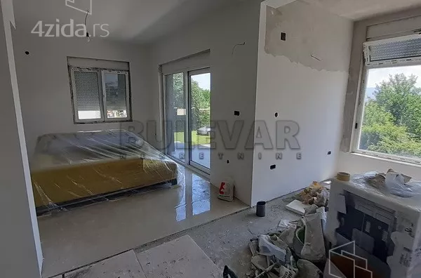 Na prodaju luksuzna kuća u Donjem Komrenu, projektovana i građena po najvišim standardima. Ukupna povšina placa je 453m2, sa panoramskim pogledom na grad. Objekat ima 220m2, podrum, prizemlje i potkrovlje. Objekat je u izgradnji na nekih 85 procenata izgrađenosti, ukrovljen, razvedene sve instalacije i priključci. Sadašnji vlasnik će završiti objekat 95 procenata izgrađenosti, tako da novom vlasniku ostaje ugradnja sobnih vrata, fini radovi i uređenje dvorišta. Podrum se sastoji od dve prostorije, na prizemlju se nalaze ulazni hodnik, tehnička soba za kontrolu uređaja i instalacija, spavaća soba sa sopstvenim kupatilom, mokri čvor, dnevna soba, velika trpezarija sa kuhinjom i terasa na koju se izlazi iz dnevne sobe i trpezarije, a do koje vode i spoljne stepenice iz dvorišta. Na potkrovlju se nalaze četri spavaće sobe, hodnik, kupatilo i vešernica. Pod u dnevnoj sobi biće od kvalitetnog parketa, u ostalim prostorijama granitne ploče, osim u spavaćoj sobi i sobama u potkrovlju gde će biti laminat. Spoljna PVC stolarija sa ALU roletnama (Rehau sistem), u dnevnoj sobi i trpezariji sa motornim pogonom, stakla troslojna sa zaštitnim UV slojem (for system).Biće ugrađena toplotna pumpa voda-vazduh i centralni bojler od 200l. Podno grejanje u svim prostorijama osim u dnenoj sobi gde će biti fenkojler radijatori. Ventilacija u prizemlju centralna. Na krovu postavljena komplet instalacija sa nosačima za ugradnju solarnih panela. Kuća poseduje projekat o instalacijama za grejanje i hlađenje kao i projekat bezbednosti i video nadzora. Potkrovlje termo izolovano, spoljna demit fasada od stiropora debljine 10cm. Plac je uknjižen 1 kroz 1, građevinska dozvola i sve komunalije plaćene za objekat. Za više informacija slobodno pozovite.