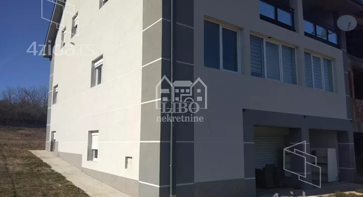 U ponudi je kuća P= 360m2- PR+I+II+Tn na 4 ari placa, Kuća je noije gradnje, U prizemlju je : dnevni boravak,kuhinja i trpezarija,hodnik,kupatilo,garaža i pomoćna prostorija. Prvi sprat:veliki dnevni boravak, prostorija sa šankom, kupatilo,hodnik i velika terasa, na drugom spratu su 5 spavaće sobe, hodnik,kupatilo i velika terasa, uz manje ulaganje postoji mogućnost da se u tavanskom prostoru napravi stan 60m2. sve etaže su povezane unutrašnjim stepenicama. PVC stolarija-prozori aluminijum su vrata. podovi su laminat i pločice,grejanje je na struju i čvrsto gorivo. Vlasništvo privatna svojina 1/1, Trofazna struja, voda gradska i bunar na placu. Urašena izolacija. Za više informacije pozvati: 065... (prikaži broj telefona) , 065... (prikaži broj telefona) . Libo agencija upisana u registar posrednika br 495