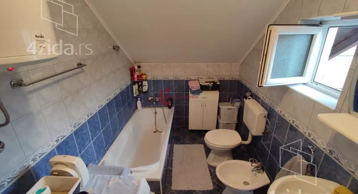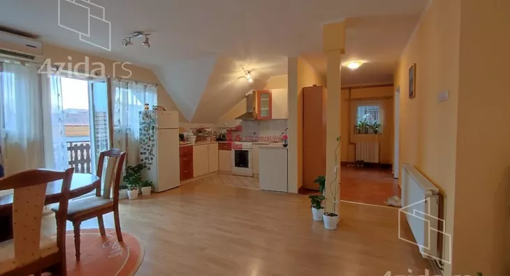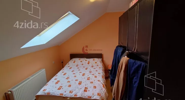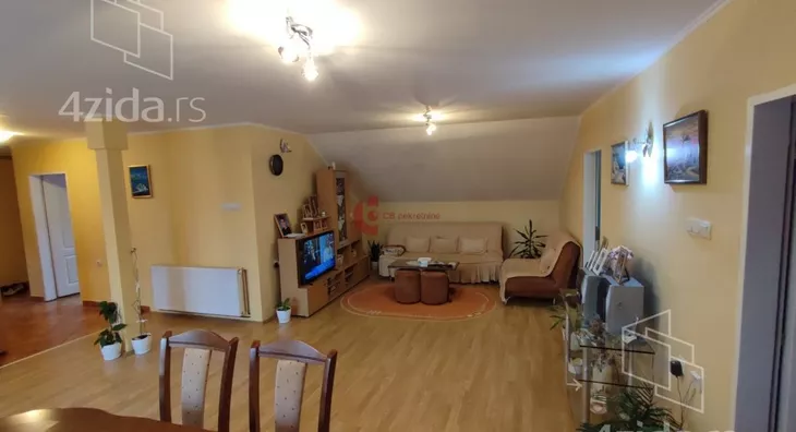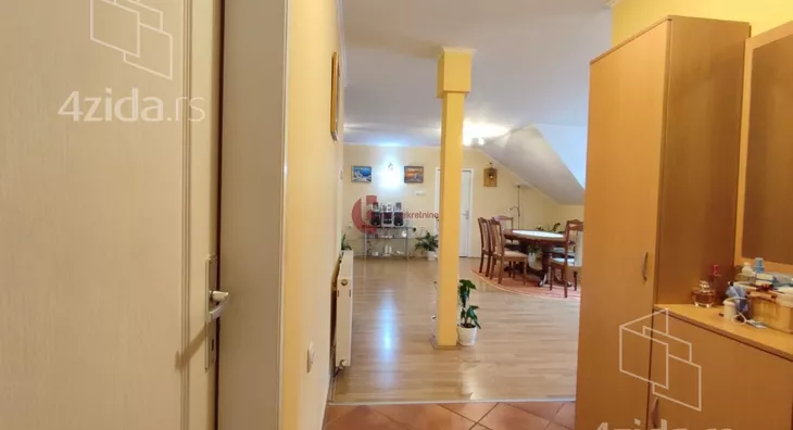 Na potkrovlju je poseban stan sa posebnom ulazom koji se sastoji iz velike nadkrivene terase, hodnika, kupatila, kuhinje sa trpezarojom i dnevnom sobom i tri spavaće sobe. Podovi su laminat i keramičke pločice.