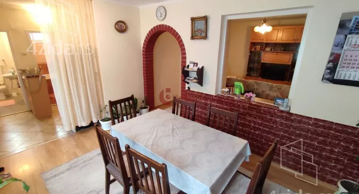 Sastoji se iz dve etaže sa posebnim ulazom. Na prizemlju je ulaz, mala kuhinja, WC, kupailo, trpezarija, dnevna soba i tri spavaća soba. Podovi su parket, laminat i keramičke pločice.