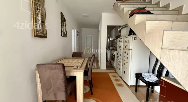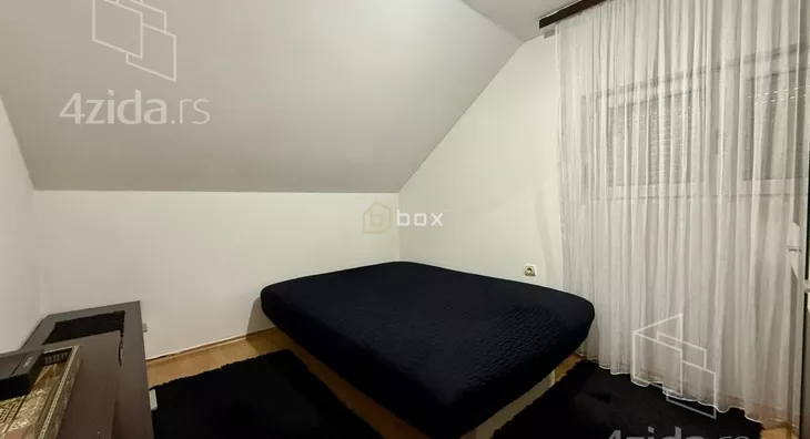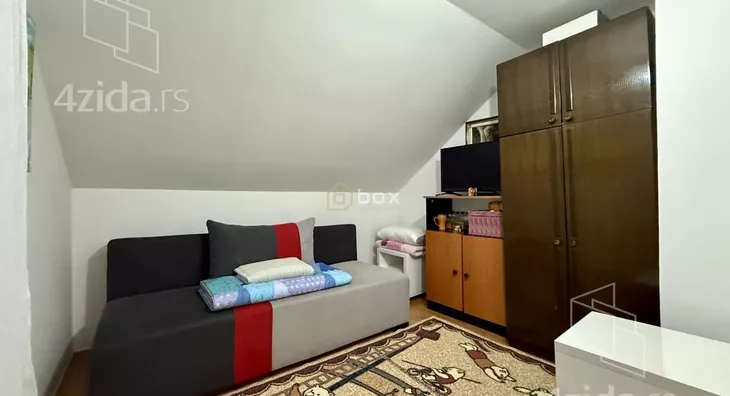 U ponudi BOX nekretnina, funkcionalna, prostrana kuća, bez ulaganja, u mirnom delu grada, u naselju Durlan. Kuća se nalazi na placu površine 150m2, sastoji iz dve potpuno odvojene stambene jedinice. U prizemlju je stan-apartman, koji se sastoji od ulaznog dela u kome su kuhinja i trperzarijski deo, dnevnog boravka, jedne spavaće sobe i kupatila. Druga stambena jedinca je iz dve etaže, na prvoj je ulazni deo sa kuhinjom i trpezarijom, dnevni boravak i jedna spavaća soba, a na drugoj, u potkrovlju se nalaze tri spavaće sobe.