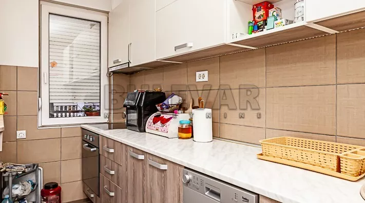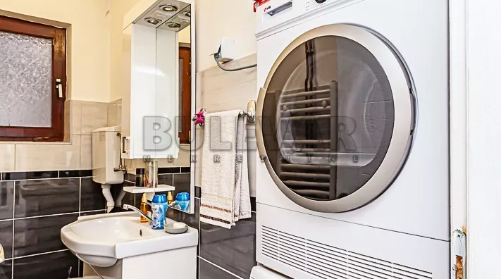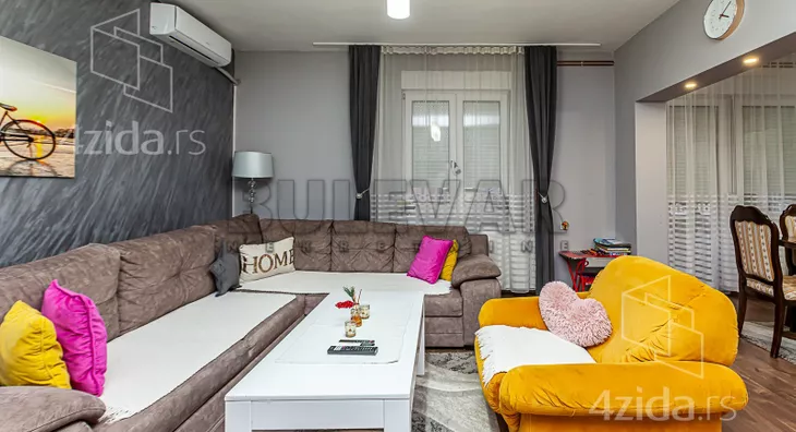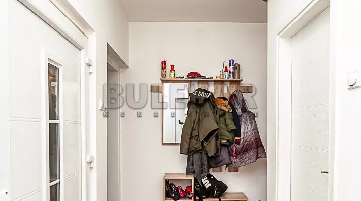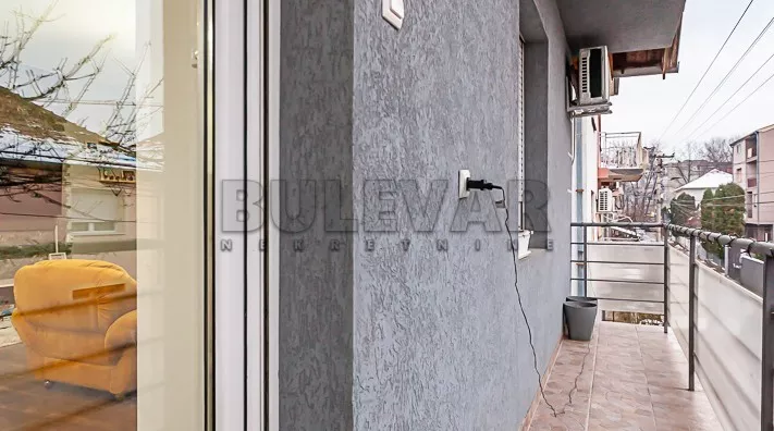 Na prodaju sprat kuće u Duvaništu bruto površine 120m2 neto površine97m2 sa podrumom , ½ potkrovlja (potkrovlje u sivoj fazi neto površine 36m2) i ½ placa površine 152m2. Kuća je spratnosti Po+Pr+I+Pk sa zajedničkim unutrašnjem stepeništem koje povezuje sve etaže. Kuća se nalazi na mirnoj lokaciji, pogodna je kako za porodični život, tako i za izdavanje. Struktura sprata je sledeća, ulazni hodnik, kupatilo, mokri čvor, dnevna soba sa izlazom na veliku terasu koja gleda ka ulici, trpezarija i kuhinja sa ostavom zasebno, i dve spavaće sobe, od toga jedna sa izlazom na terasu. Stolarija spoljna PVC, grejanje je etažno kotlom na pelet, na podu kvalitetan laminat u dnevnoj sobi klima, spoljna demit fasada sa izolacijom od stiropora debljine 8cm.Kuća, i plac su uknjiženi, svojina privatna, kuća ima odobrenje za gradnju, a nema odobrenje za upotrebu i nije urađeno etažno izdvanjanje stanova kao zasebnih celina. Prodaje se sa nameštajem i tehnikom. Za više informacija slobodno pozovite.
