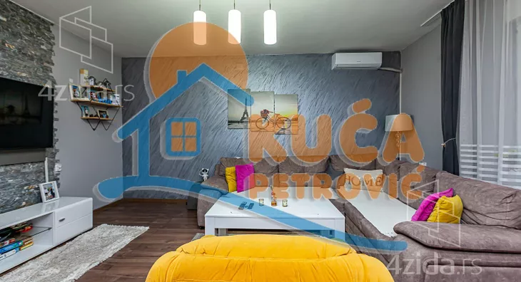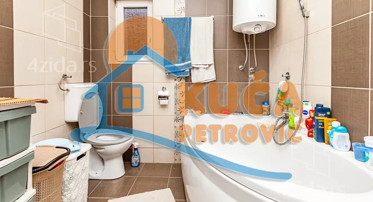 Na prodaju sprat kuće u Duvaništu bruto površine 120m2 neto površine97m2 sa podrumom , ½ potkrovlja (potkrovlje u sivoj fazi neto površine 36m2) i ½ placa površine 152m2. Kuća je spratnosti Po+Pr+I+Pk sa zajedničkim unutrašnjem stepeništem koje povezuje sve etaže. Kuća se nalazi na mirnoj lokaciji, pogodna je kako za porodični život, tako i za izdavanje. Struktura sprata je sledeća, ulazni hodnik, kupatilo, mokri čvor, dnevna soba sa izlazom na veliku terasu koja gleda ka ulici, trpezarija i kuhinja sa ostavom zasebno, i dve spavaće sobe, od toga jedna sa izlazom na terasu. Stolarija spoljna PVC, grejanje je etažno kotlom na pelet, na podu kvalitetan laminat u dnevnoj sobi klima, spoljna demit fasada sa izolacijom od stiropora debljine 8cm.Kuća, i plac su uknjiženi, svojina privatna, kuća ima odobrenje za gradnju, a nema odobrenje za upotrebu i nije urađeno etažno izdvanjanje stanova kao zasebnih celina. Prodaje se sa nameštajem i tehnikom. Za više informacija slobodno pozovite.