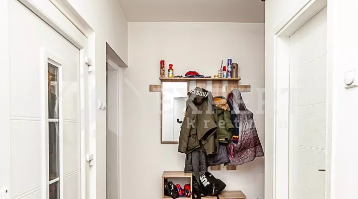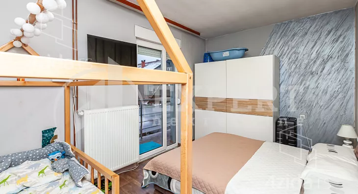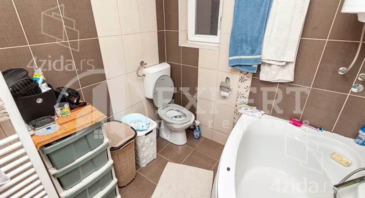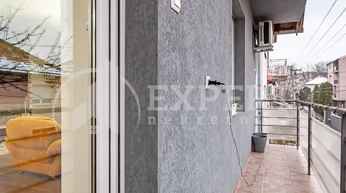 Na prodaju sprat kuće u Duvaništu bruto površine 120m2 neto površine97m2 sa podrumom , ½ potkrovlja (potkrovlje u sivoj fazi neto površine 36m2) i ½ placa površine 152m2. Kuća je spratnosti Po+Pr+I+Pk sa zajedničkim unutrašnjem stepeništem koje povezuje sve etaže. Kuća se nalazi na mirnoj lokaciji, pogodna je kako za porodični život, tako i za izdavanje. Struktura sprata je sledeća, ulazni hodnik, kupatilo, mokri čvor, dnevna soba sa izlazom na veliku terasu koja gleda ka ulici, trpezarija i kuhinja sa ostavom zasebno, i dve spavaće sobe, od toga jedna sa izlazom na terasu. Stolarija spoljna PVC, grejanje je etažno kotlom na pelet, na podu kvalitetan laminat u dnevnoj sobi klima, spoljna demit fasada sa izolacijom od stiropora debljine 8cm.Kuća, i plac su uknjiženi, svojina privatna, kuća ima odobrenje za gradnju, a nema odobrenje za upotrebu i nije urađeno etažno izdvanjanje stanova kao zasebnih celina. Prodaje se sa nameštajem i tehnikom. Za više informacija slobodno pozovite.