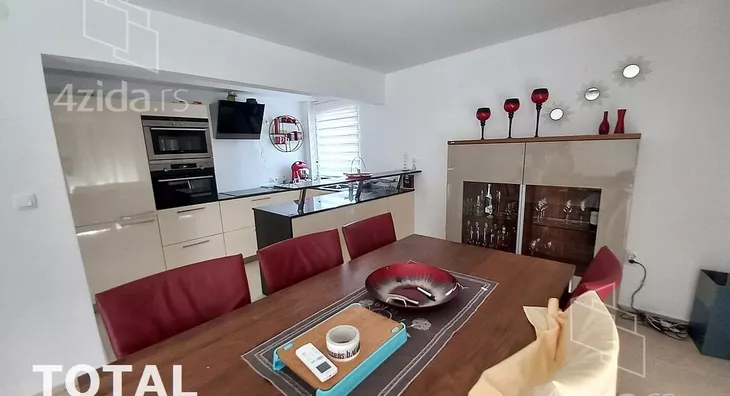 Agencijska oznaka 3090200 - Kvalitetno opremljena kuća na samom ulazu u Futog. Dva dnevna boravka sa trpezarijama i opremljenim kuhinjama. Četiri spavaće sobe. Dva kupatila opremljena Italijanskom keramikom. Grejanje na gas, u prizemlju radijatori na spratu podno. Izolacija, fasada, interfon, kamere, alarmni uredjaj. U ceni tri kuhinje, ugradni ormani i veći deo markiranog nameštaja iz Holandije. Lepo uredjeno dvorište puno zelenila i cveca. U dnu dvorišta nov pomoćni objekat, sa kompletnom sanitarijom za kupatilo i nameštajem koje treba postaviti. Trenutno se ne prodaje putem kredita.