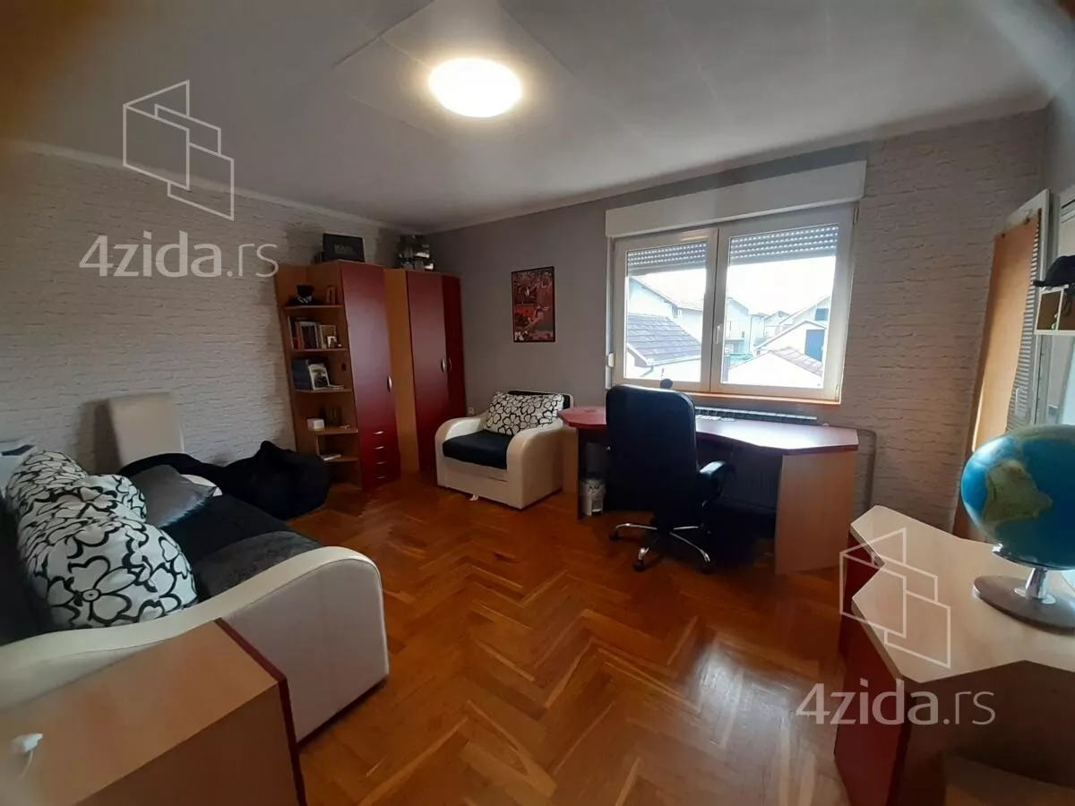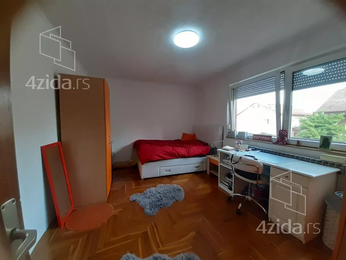 Kuća je spratnosti Po+Pr+1+tavan. U podrum se ulazi unutrašnjim stepeništem iz kuće. U prizemlju su prostorije: moderna nova kuhinja sa trpezarijom, ostava, hodnik, kupatilo, veliki dnevni boravak sa još jednom trpezarijom, unutrašnje stepenište i velika nadkrivena terasa iz kuhinje prema dvorištu. Na spratu su predsoblje, terasa, tri velike spavaće sobe, jedna polusoba i prostrano kupatilo. Tavan je jedna svetla prostorija sa spoljnom PVC stolarijom.