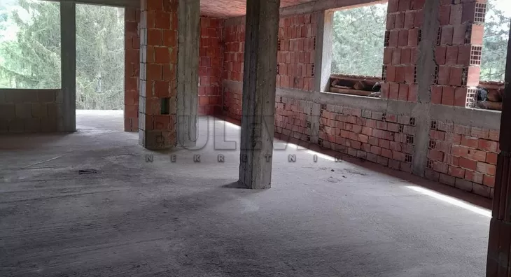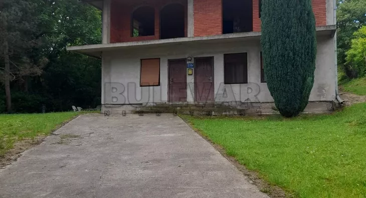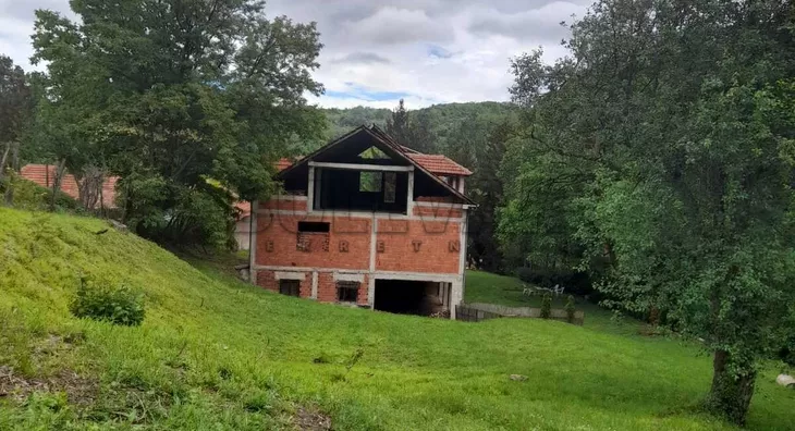 Prodaje se kuća površine u osnovi oko 330m2 na tri sprarta. Kuća se prodaje zajedno sa tri parcele koje su ukupno 3885m2. Kuća je u sivoj fazi gradnje ali je priključuna na gradsku vodu, kanalizaciju i struju. Pogodna je za mnoge delatnosti zbog velike kvadrature: restoran, hotel, starački dom, magacin, bolnicu ili neku drugu namenu. Iza kuće je lepa priroda. Kroz sam plac izvire izvor pijaće vode, a plac se graniči sa potokom. Kuća je u postupku legalizacije.