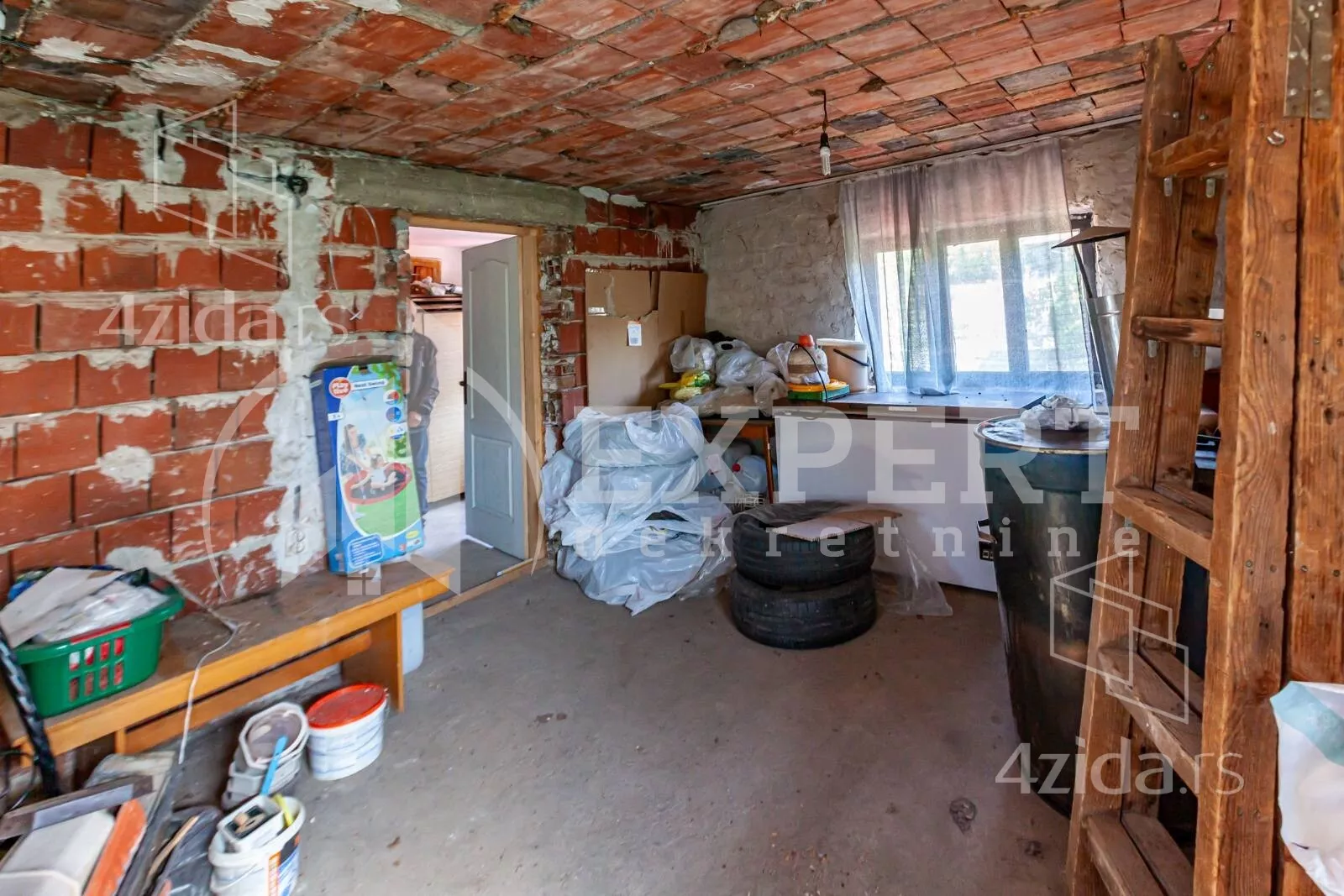 Na prodaju vikendica 65m2 u lepom, prirodnom okuženju, u vikend naselju, kod Gabrovačkog manastira. Kuća se sastoji od prizemlja i sprata. Prizemlje se sastoji od ulaznog hodnika, kupatila, dnevnog boravka sa trpezarijom i kuhinjom i spavaće sobe. Na podovima je laminat, prozori su metalni, grejanje je na čvrsto gorivo, struja je monofazna. Sprat je u sivoj fazi, sastoji se od ulaznog hodnika i dve prostorije. Ispred kuće se nalazi lep letnjikovac, iza kuće su dva objekta tvrde gradnje 25m2, sa strujom. Kuća ima septičku jamu, cisternu sa vodom i hidrofor, Kuća je u postupku legalizacije, kupovina samo za gotovinu, za više informacija, stojimo Vam na raspolaganju.