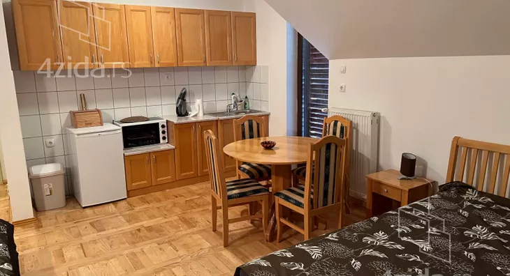 - Opremljenost: Namešteno - TV, veš mašina, kuhinjski elementi, frižider, zamrzivač, mikrotalasna rerna, šporet, rerna, ležaj, plakar, kanalizacija