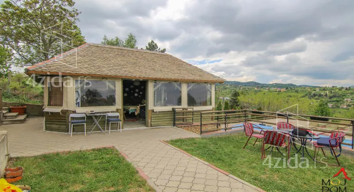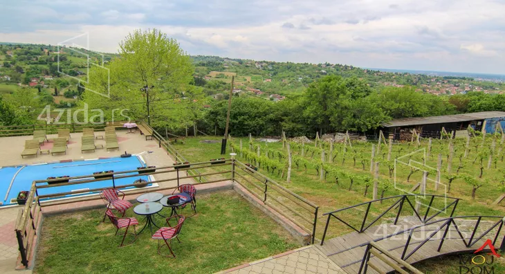 This property in Sremska Kamenica can be an ideal investment, and is currently rented out as a vacation property on a daily basis. The land is located in a construction zone on one of the most beautiful slopes with a stunning view of Novi Sad, the Danube River, and Fruška Gora. (Moj Dom nekretnine, Novi Sad, Reg.br. 174)