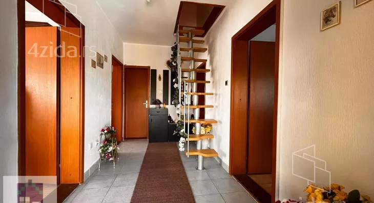 Struktura: Prizemlje se sastoji od ulaznog hodnika , prostrane dnevne sobe , dve spavaće sobe , kuhinje sa trpezarijom , ostavom i kupatilom. Centralni hodnik povezuje sve prostorije i unutrasnje stepenište ka gornjoj etaži . Sprat se sastoji od dve spavaće sobe, jedne nedovrsene prostorije koja se može adaptirati po želji buduceg vlasnika i kupatila .