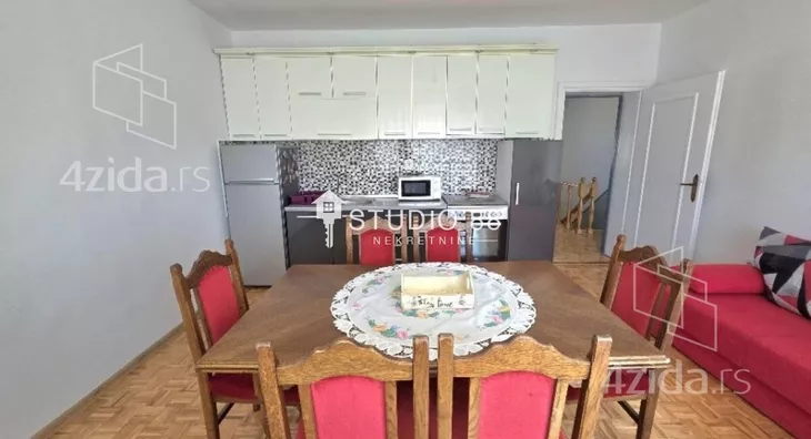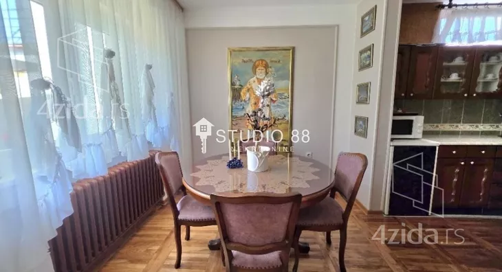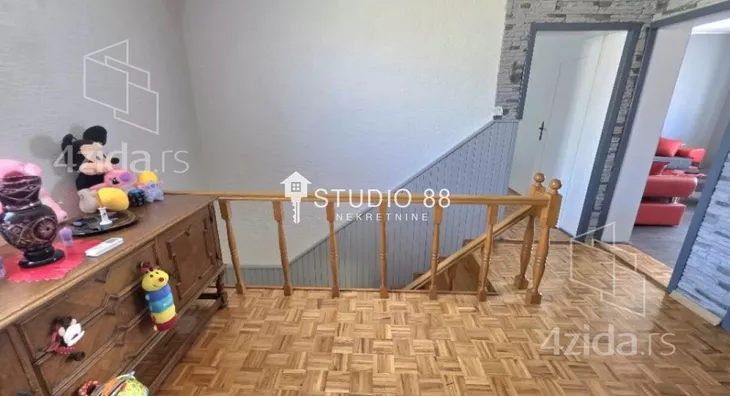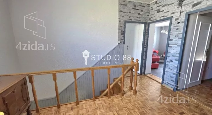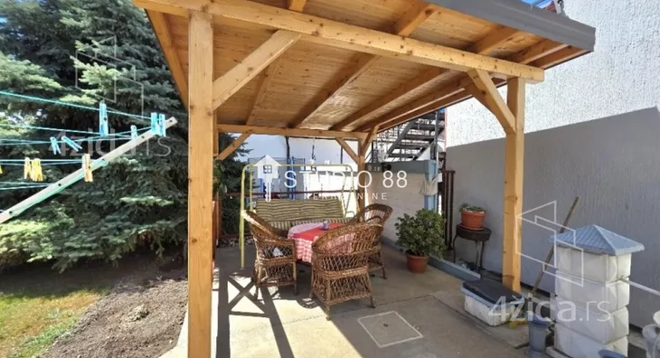 Spratna kuća na gradnulici površine 200m2 na placu od 351m2. Prizemlje kuće sastoji se od predsoblja, kupatila, ostave, kuhinje, trpezarije, dnevnog boravka, i zatvorene terase od 20m2. U sklopu prizemlja je i garaža. Na spratu kuće nalaze se tri sobe, kupatilo i open space kuhinja sa trpezarijom i dnevnim boravkom. Zidano od čvrstog materijala, centralno grejanje na gas, pvc stolarija, po podovima su parketi i keramika, parking ispred kuće, ... Lepo održavano dvorište sa letnjikovcem. Agencijska provizija 2% Agencijska provizija 2%. ID oglasa: 43641.