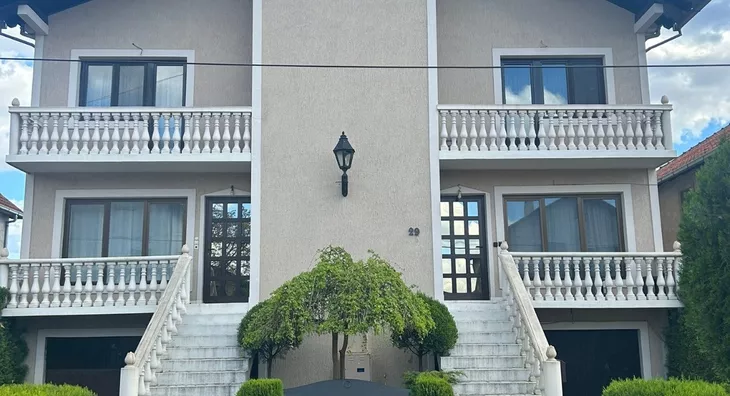 Ova prelepa dvojna kuća nalazi se jednom od najlepših naselja u Indjiji. Svaka kuća ima svoj poseban ulaz i sve odvojeno.Svaka od kuća ima: hodnik,toalete,kuhinju,veliki dnevni boravak i trpezaruji.Na spratu po 3 spavace sobe i kupatilo.Ispod cele kuce nalaze se podrumske prostorije visine 2,5 m.Takodje postoje i tavanske prostorije.