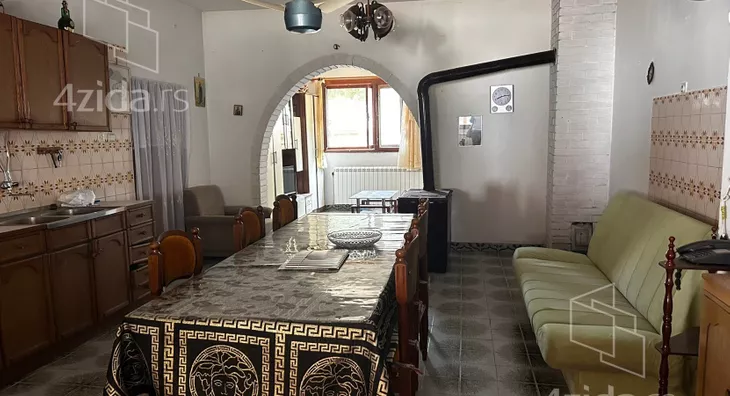 Ova kuća veličine je oko 150m2 i nalazi se na placu veličine 7 ari.Kuća je čvrste gradnje i veoma prostrana unutra. Sastoji se iz hodnika,kupatila,velike trpezarije sa kuhinjom,dnevnim boravkom u prizemlju.Zatim na spratu tu su tri sobe i kupatilo,terasa. Potkrovlje nije sredjeno za zivot ali ima lep potencijal i krov je odličan.