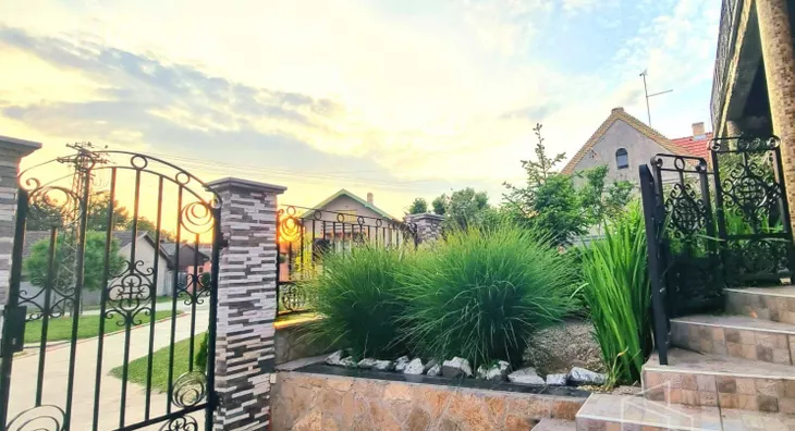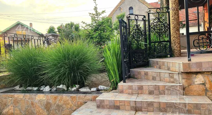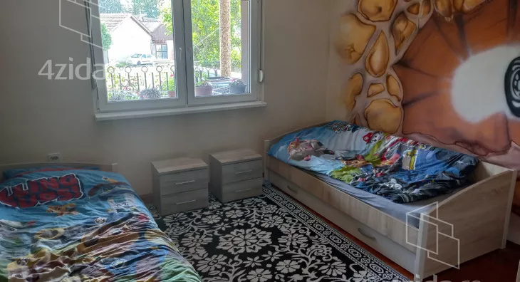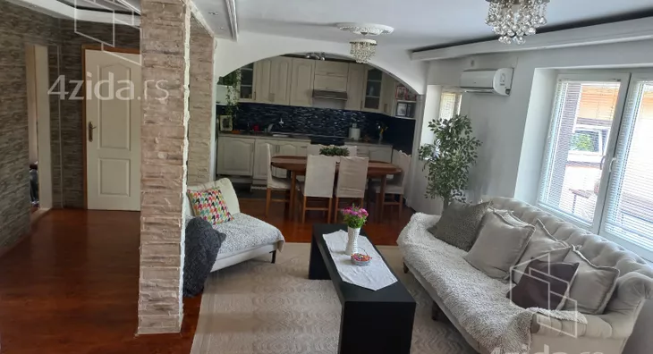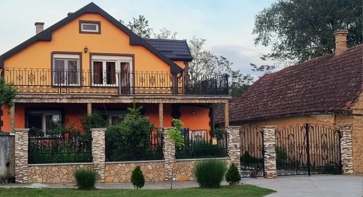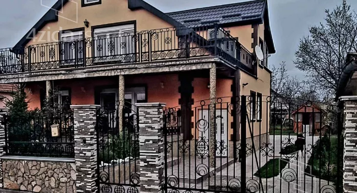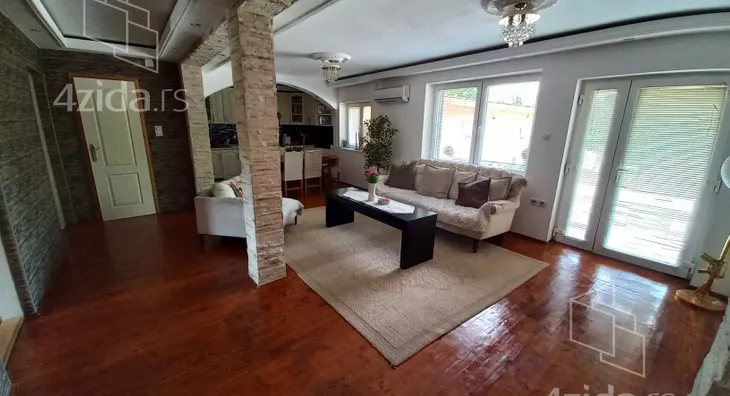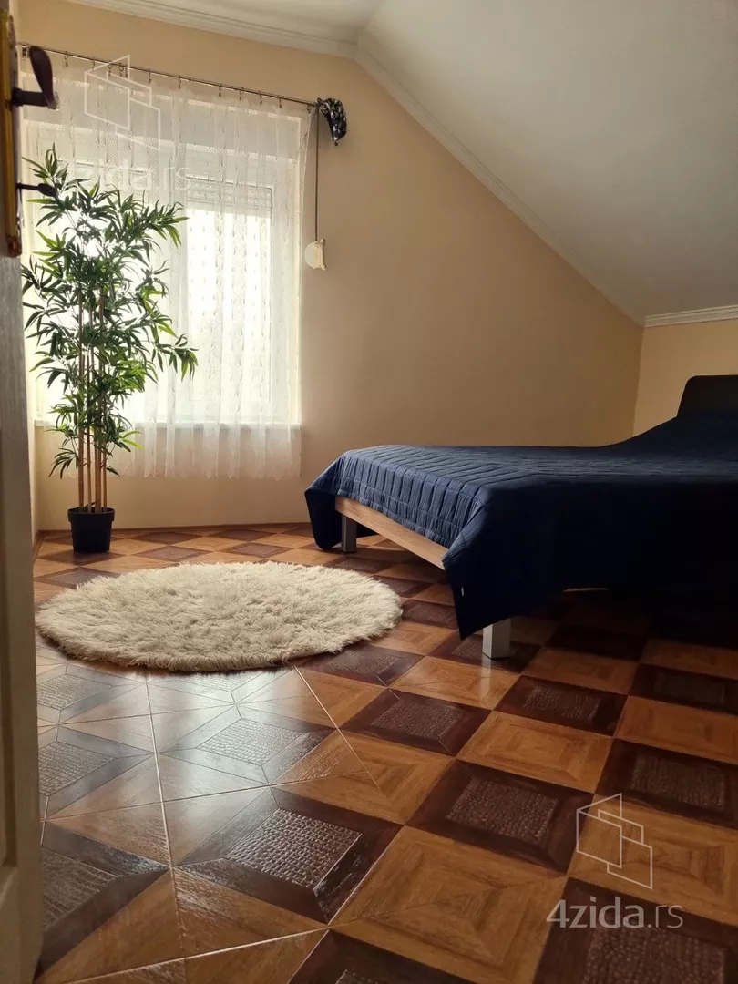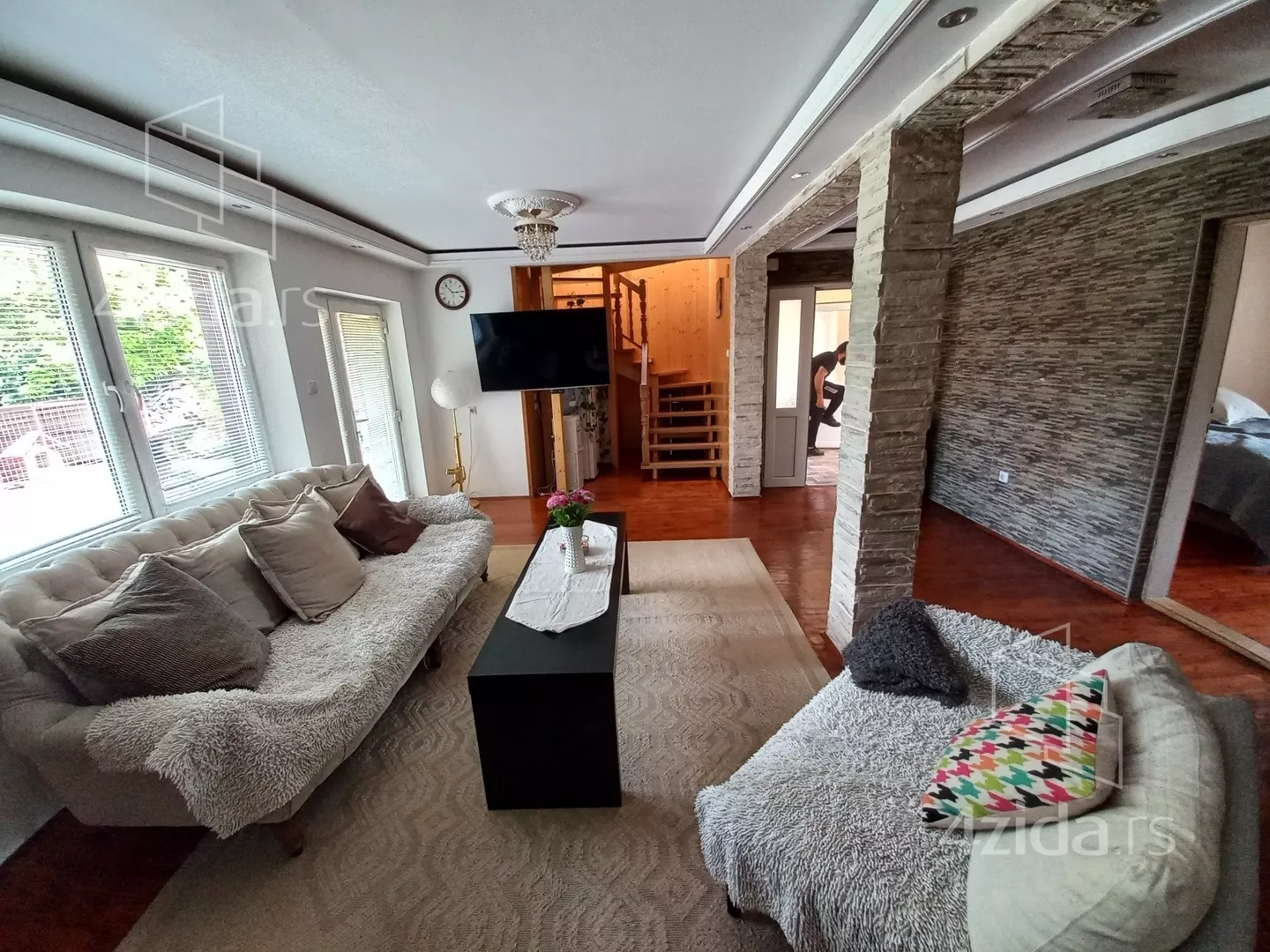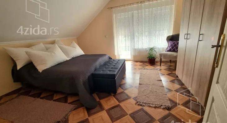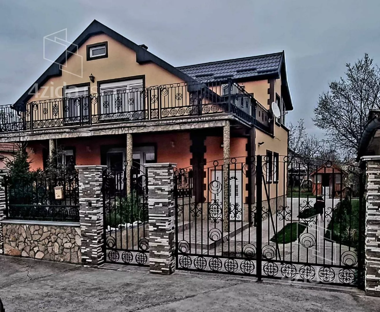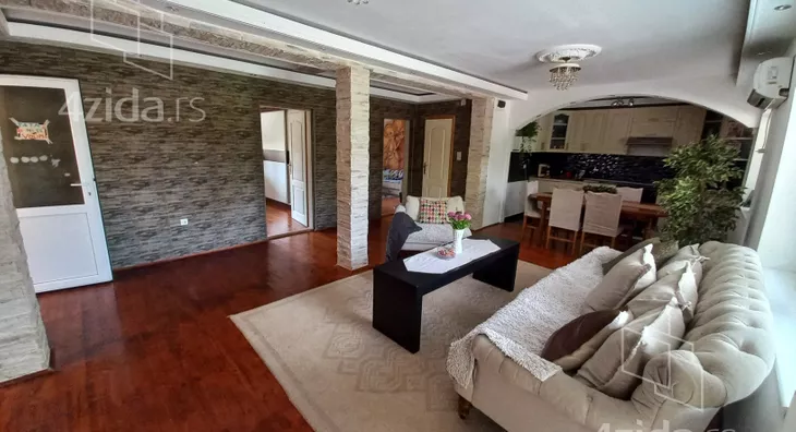 Porodična petosobna komforna stambena zgrada, u dve etaže, sastoji se od prostranog dnevnog boravka sa kuhinjom i trpezarijom , odakle ima izlaz na veliku terasu, prema unurašnjem dvorištu, dve spavaće sobe, kupatilo, predsoblje, hodnik i stepenište , površine 99 m2, u prizemlju. Na spratu su tri sobe , kupatilo, hodnik i velika terasa prema ulici, površine 99 m2, U dvorištu su tri pomoćna objekta, ukupne površine 70 m2, ispod jednog, koji je uz kuću , nalazi se podrum, gore je vešernica i ostava. U dvorištu je uveden priključak na gas. Kuća se greje inverter klimama.Uređeno dvorište je površine 703 m2.