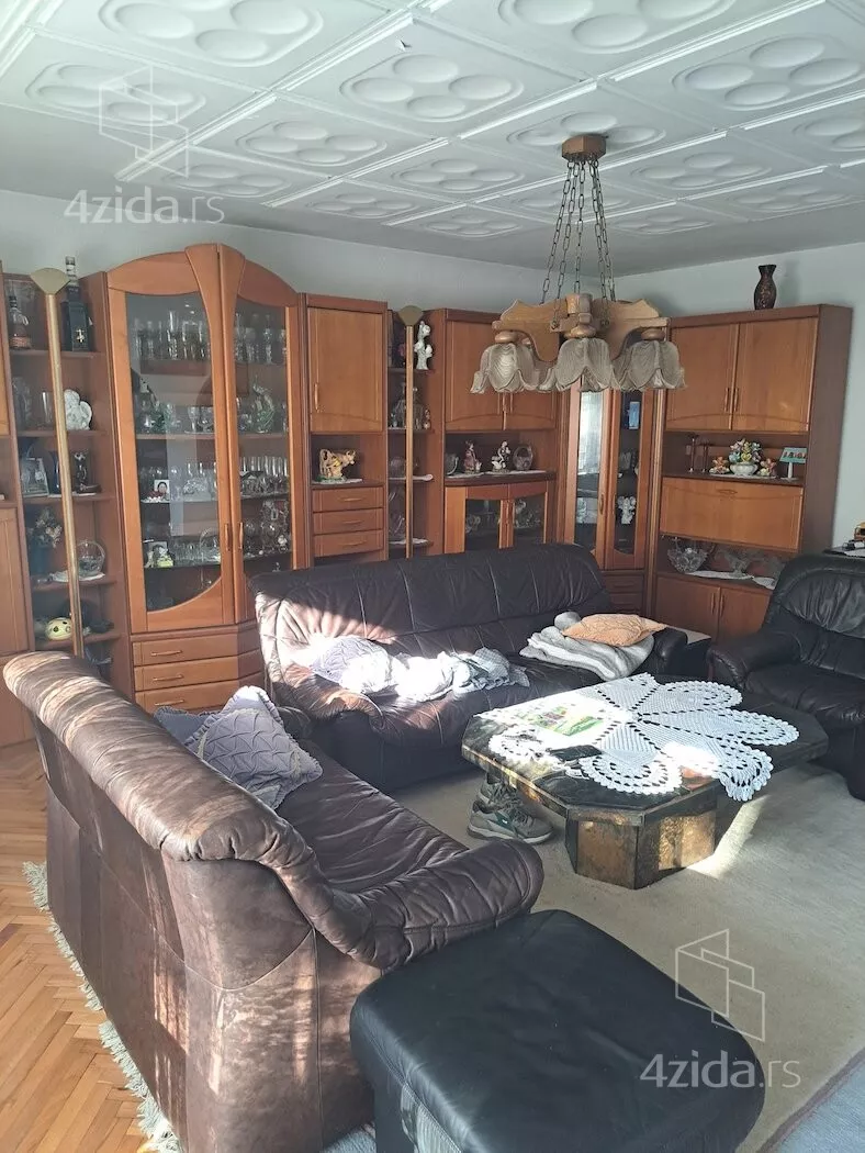 Prizemlje : predsoblje, velika dnevna soba sa izlazom na terasu, a u produžetku su kuhinja i trpezarija, kupatilo, mali toalet i 2 spavaće sobe.