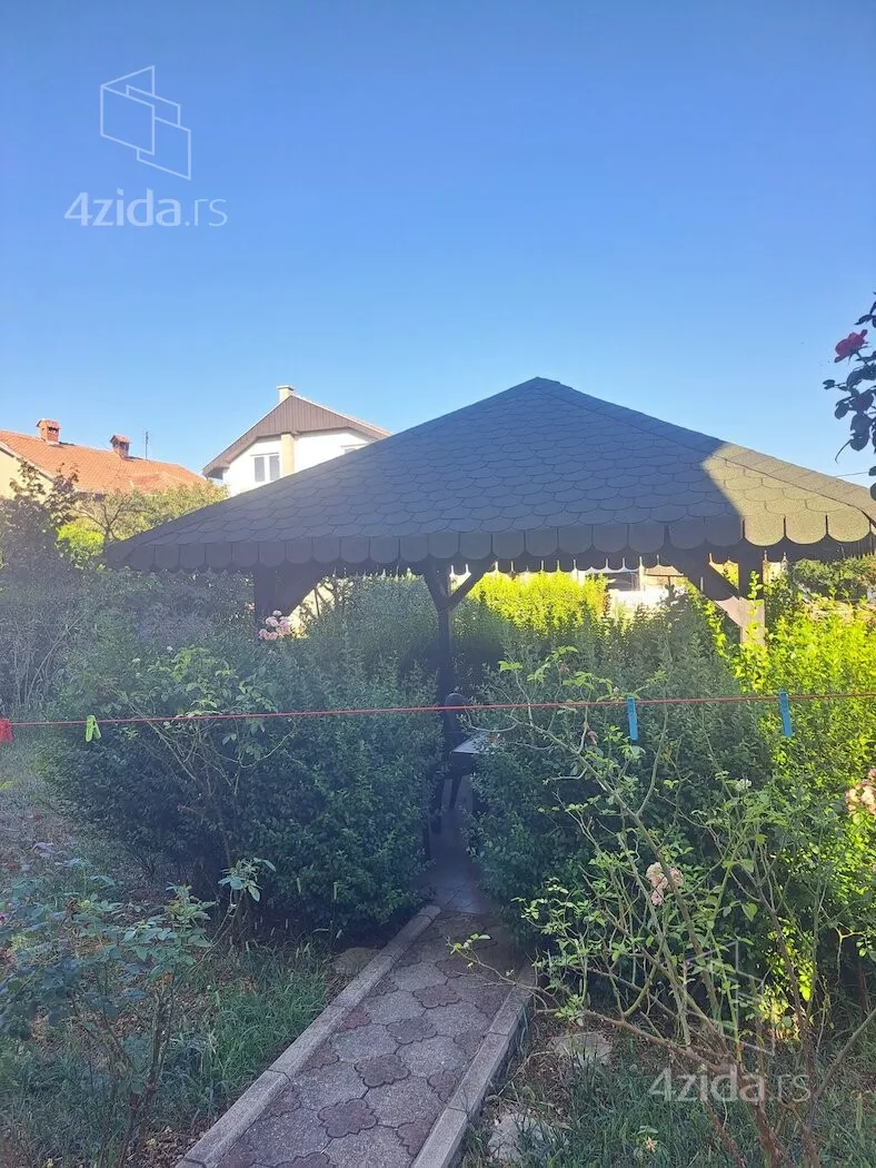 Iza kuće je dvorište od oko 3-4 ara ograđeno žičanom i visokom živom ogradom. U sredini dvorista je letnjikovac, a okolo su ukrasno rastinje i cveće.