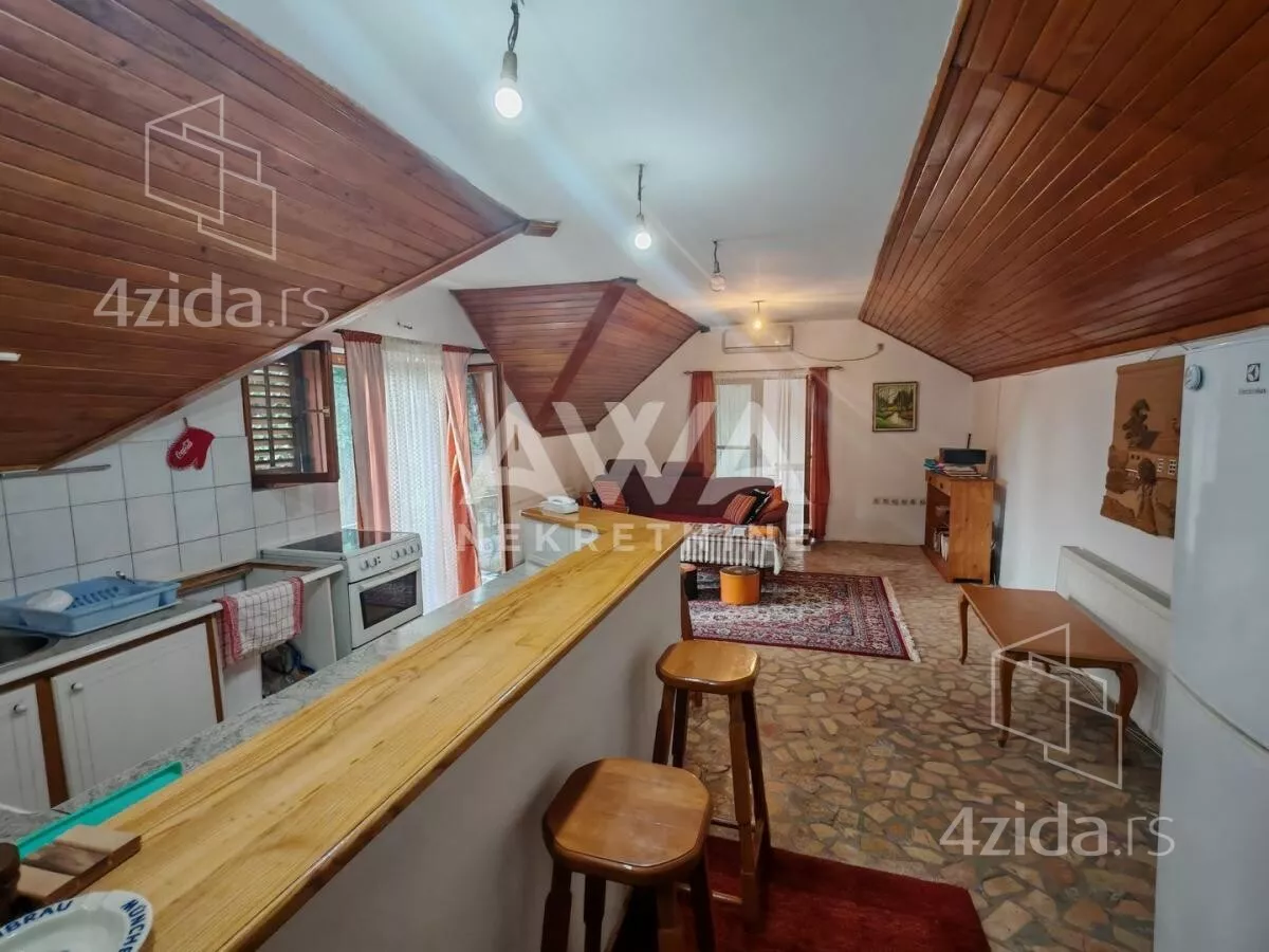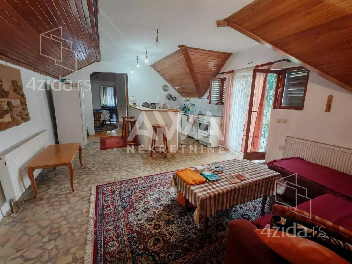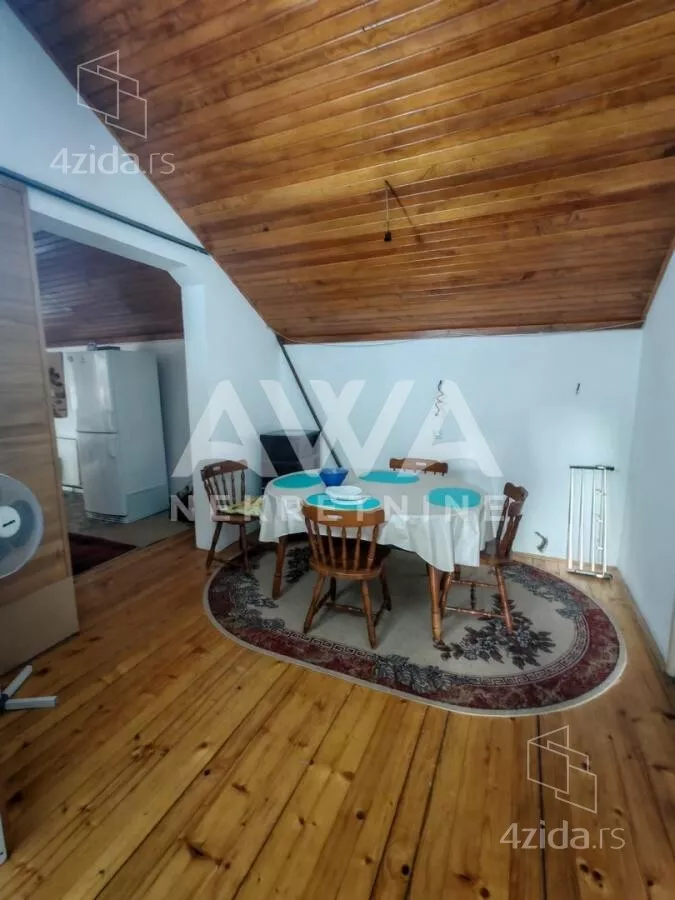 Drugi stan (prizemlje): potrebna adaptacija, hodnik, kupatilo, kuhinja sa trpezarijom i dnevnim boravkom, jedna spavaća soba, stolarija drvena
