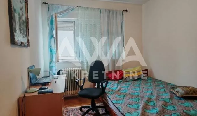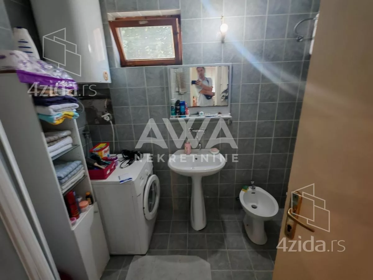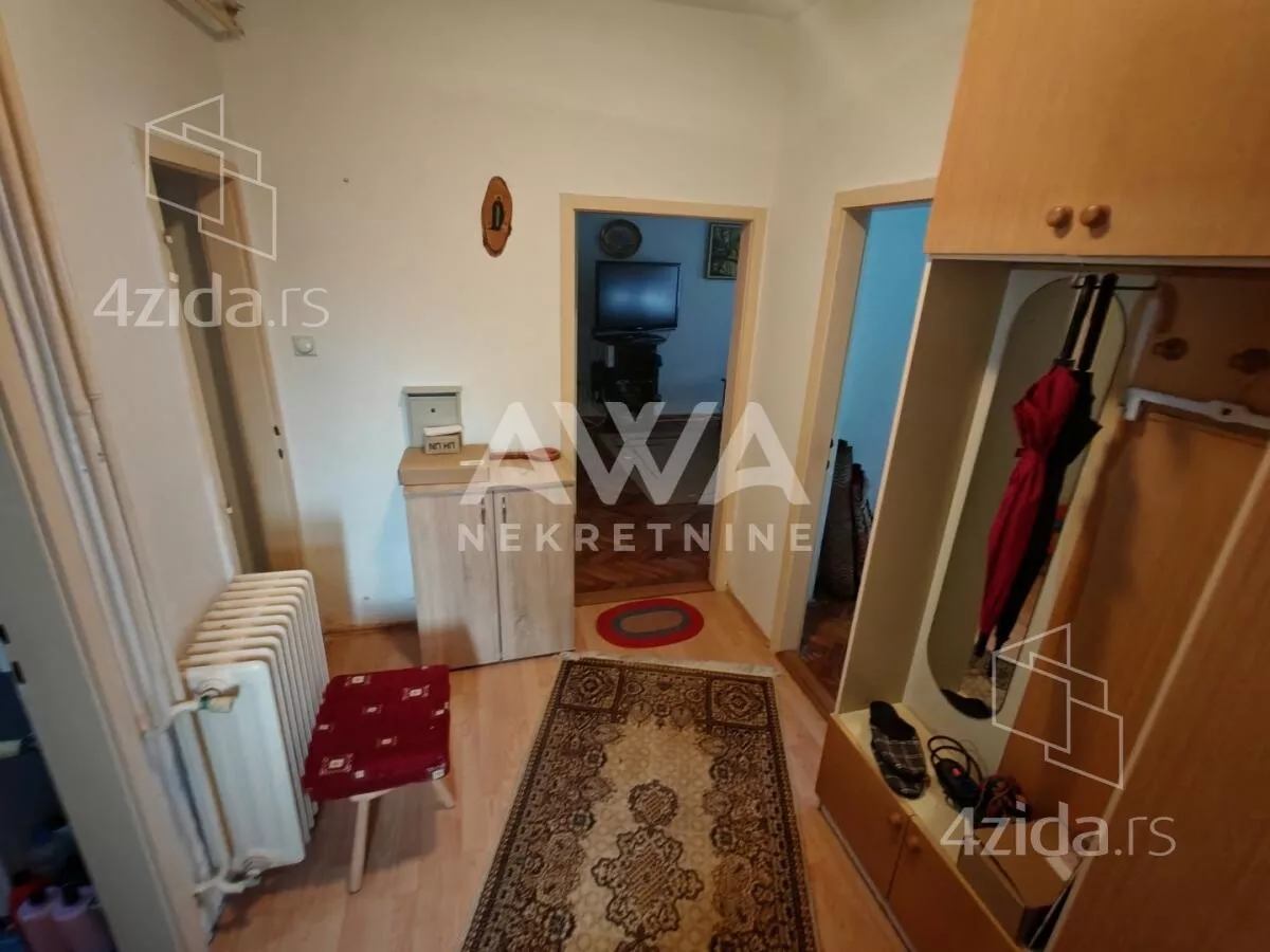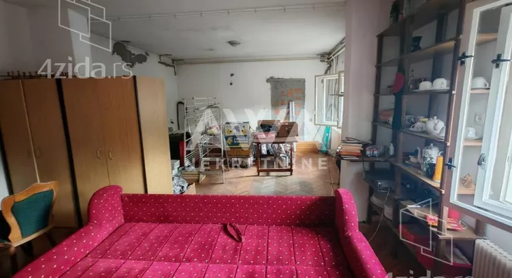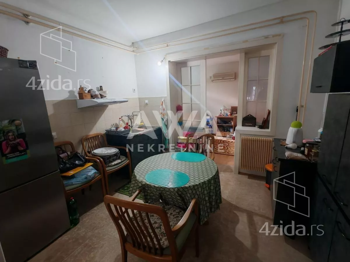 Drugi stan (prizemlje): potrebna adaptacija, hodnik, kupatilo, kuhinja sa trpezarijom i dnevnim boravkom, jedna spavaća soba, stolarija drvena