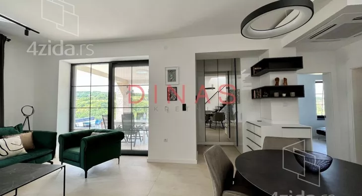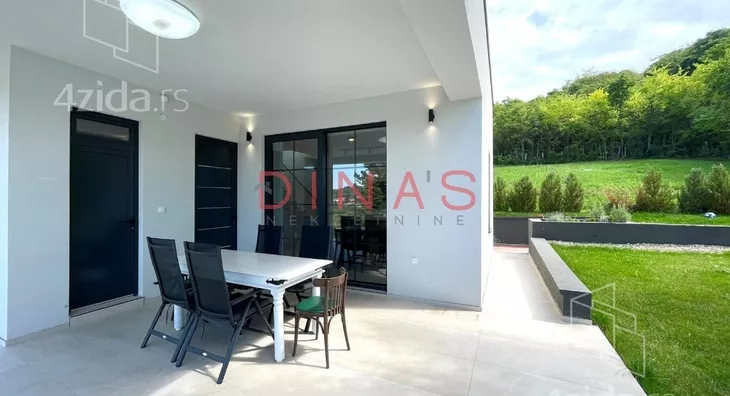 Ekskluzivna ponuda! Vikend kuća savremenog dizajna na obroncima Fruške Gore. Na 13km udaljenosti od centra Novog Sada i 1,5km od centra Sremskih Karlovaca. Na uzvišenom, prostranom i uređenom placu, sa asflatnim prilazom do nje, zaklonjena, izolovana a opet u neposrednoj blizini glavnog puta. Osmišljena i građena po poslednjim standardima za moderno I kvalitetno, ova smart kuća pružiće Vam maksimalnu udobnost u zdravom, zelenom okruženju. Koncipirana za jednostavno i energetski efikasno održavanje unutar i van nje. Sistem centralnog grejanja i hlađenja na toplotne pumpe. Samoodrživi bazen (8x4) sa slanom vodom, ph dozator, robot čistač, grejanje vode je takođe na toplotne pumpe. Sastoji se od 5 prostorija sa kuhinjom i 2 kupatila.