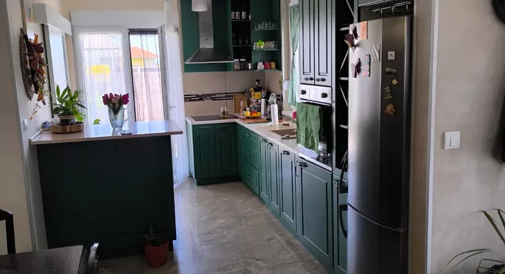 - Opremljenost: Namešteno - TV, klima, veš mašina, kuhinjski elementi, frižider, šporet, rerna, plakar, ugradni plakar
