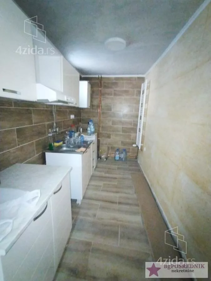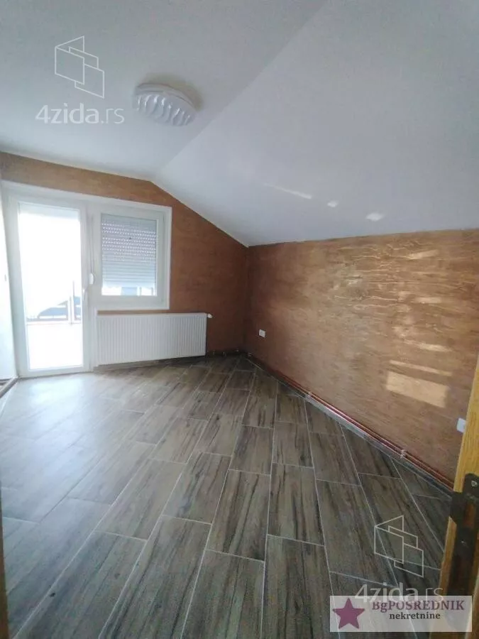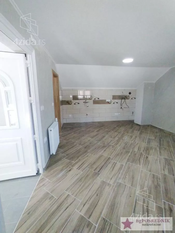 U prizemlju se nalazi hodnik, dnevna soba sa trpezarijom, kuhinja, spavaća soba, kupatilo i prostorija sa posebnim ulazom.