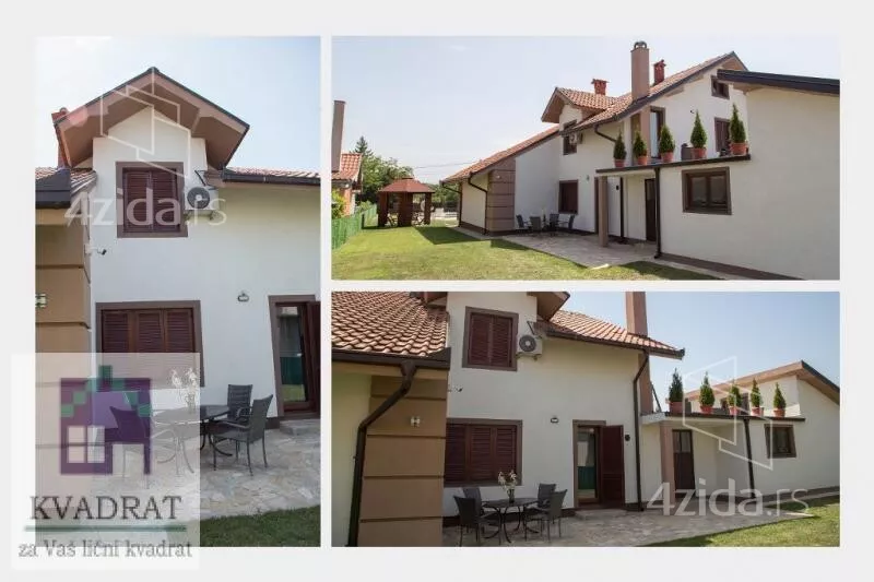 Opremljenost: Kuća je veoma kvalitetno opremljena i konstrutivno odrađena. Unutrašnja i spoljašnja stolarija sa žaluzinama je drvena - Termopan (termoizolaciono staklo), podovi u kombinaciji parketa u visokom sjaju i keramike, spušteni plafoni sa led rasvetom, zidovi rađeni špatulat tehnikom, izolacija i fasada, video nadzor, dvorišna rasveta sa senzorom za paljenje i gašenje, dvorišna ograda i ograde na terasama od dekorativnih metalnih panela sečenih CNC mašinom, daljinsko otvaranje kapije i mnogo drugih pogodnosti su samo neki od benefita ove nekretnine. Kompletna infrastruktura, trofazna struja, gradska voda, etažno grejanje – kotao na pelet sa daljinskim upravljanjem i aktivacijom putem SMS poruke.