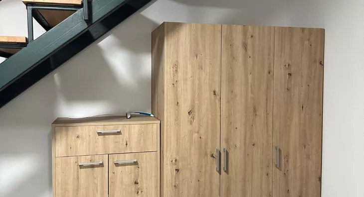 Na spratu se nalaze dve spavaće sobe i kuptilo.