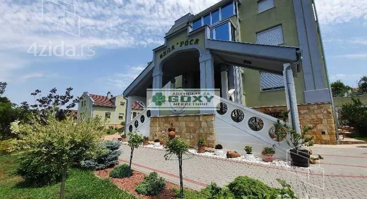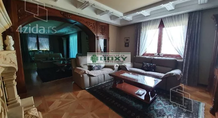 Vila i kuca za stanovanje, na placu od 72 ara. Kompletan plac je ogradjen ozidanom ogradom visine 2 m. U prizemlju kuce se nalaze ostava i garaza za dva automonila. Na visokom prizemlju: hodnik, kuhinja, trpezarija, dnevni boravak sa kaminom, toalet i drveno stepeniste, koje vodi na sprat. Na spratu: 2 spavace sobe, kupatilo, terasa. Sve je opremljeno lux namestajem. U niskom prizemlju vile: ostava, teretana, bilijar sala, veseraj, kotlarnica, parno kupatilo, tehnicke prostorije, kupatilo i bazen zatvoreni 11,5 x 5,5. Ispred je prostor za suncanje sa lezaljkama. Na drugom nivou se nalaze ulazni hodnik, kuhinja sa liftom, velika trpezarija, dnevni boravak sa kaminom, sala sa bibliotekom, WC i zastakljena terasa. Sprat: podest, kancelarija sa zastakljenom terasom, apartman sa dve sobe i kupatilom, velika spavaca soba sa gardaroberom, djakuzi kupatilo, soba "molitvenik", terasa. Na potkrovlju: soba za elektro upravljanje, apartman sa dve sobe, kupatilo, terasa. Pored bazena se nalazi mala kucica sa kuhinjom, kupatilom, pecenjarom, rostiljem i ostavom za alat. Kuca za stanovanje i vila se prodaju kompletno namestene. Sav namestaj, unutrasnja i spoljasnja stolarija i enterijer je rucna izrada vrhunskih majstora. Ispod keramickih plocica je podno grejanje. Plac je po vocem, gde dominira kruska viljemovka, zasadjeni su i cokoti loze, sljiva, tresnja, kajsija, breskva, borovnica, lesnik i drugo voce. Nekretnina koju vredi pogledati. Retko u ponudi.