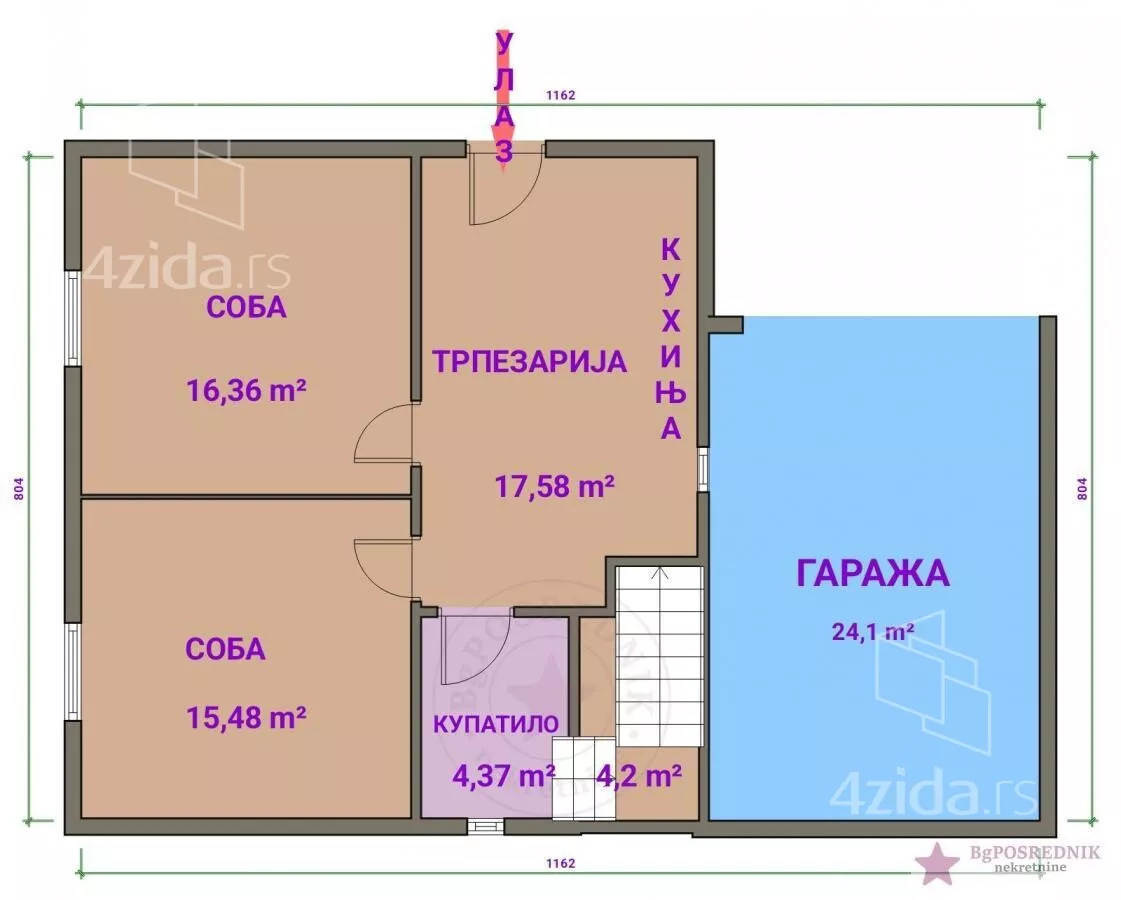 Zidana garaža uz kuću 24m2.