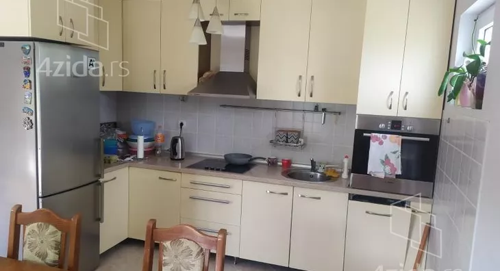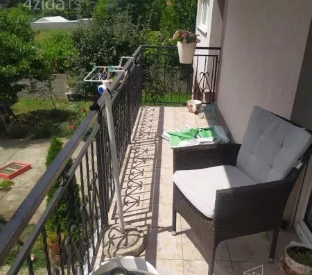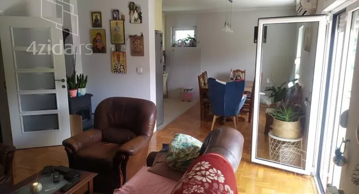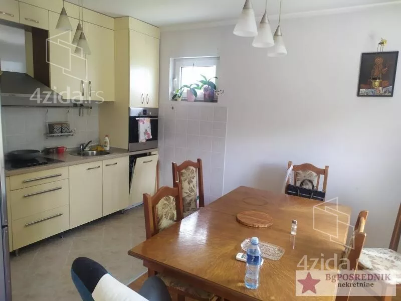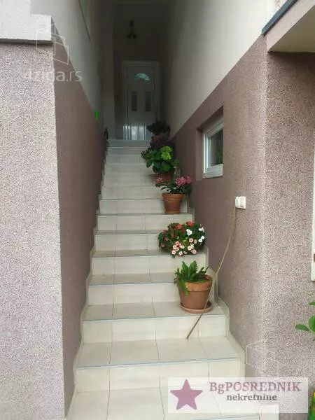 Sastoji se od dva identična trosobna stana na vpr i prvom spratu, u prizemlju (suteren) je 1.5 stan od 40m2, dve garaže, kotlarnica, ostava, pušnica, tri terase od kojih je jedna velika 30m2 i zastakljena je.