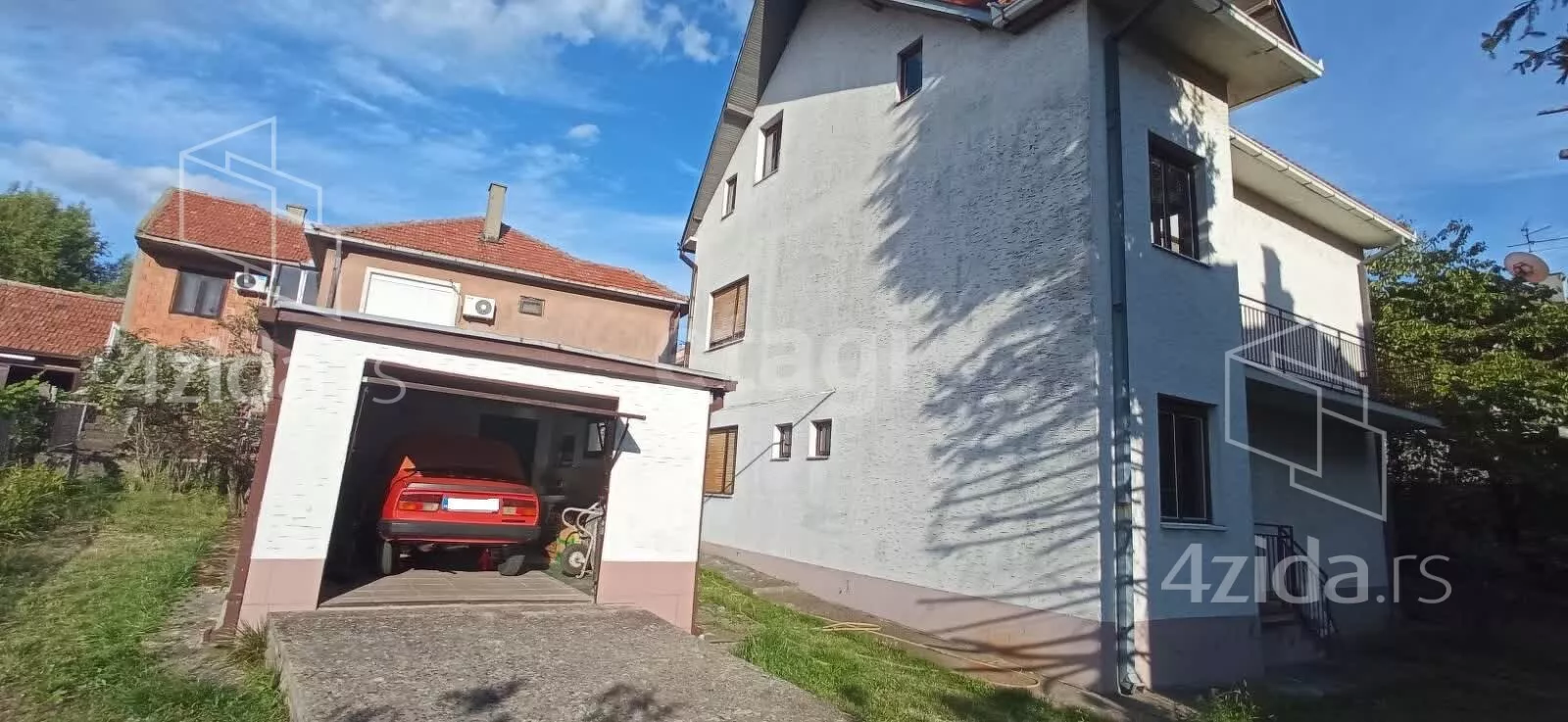 Гроцка, посёлок Калуджерица, дом зарегистрирован в кадастре, P+I+PTK, обособлен на огороженном зарегистрированном участке площадью 5,74 сотки, в глубине от улицы, с подъездной дорогой. Площадь участка: 100 м² – под домом, 29 м² – под гаражом. Первый этаж: 3 квартиры площадью 82 м², гостиная, две спальни, кухня, кладовая, ванная комната; Второй этаж: 3 квартиры площадью 81 м², гостиная, две спальни, кухня, кладовая, ванная комната, две террасы во всю длину; Мансарда: 2 квартиры площадью 34 м², две комнаты, столовая, кухня, ванная комната, отдельная комната – библиотека, терраса. Вход в каждую квартиру из коридора, в каждой квартире свой электросчетчик. Отопление – от электричества и на дрова.