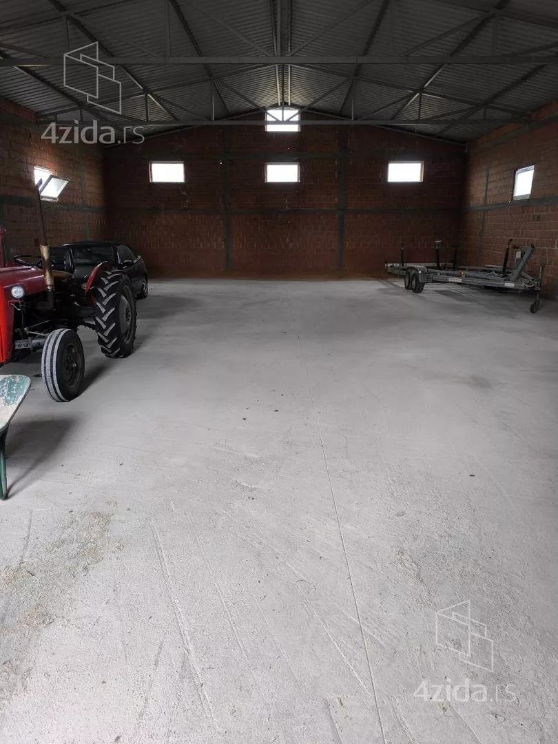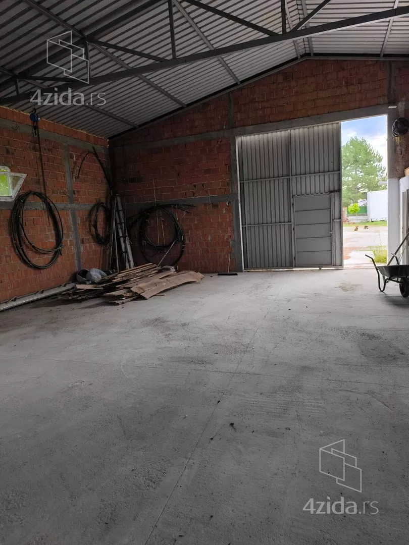 Pored kuće na parceli je izgrađena hala od 263 m2, sa svim neophodnim priključcima a u sklopu nje je manja prostorija koja je predviđena za kancelariju i dodatno wc. Na parceli postoje još dva pomoćna objekta od kojih je jedna šupa sa radionicom i letnjikovac zatvorenog tipa sa terasom koji može da se koristi i kao letnja kuhinja.