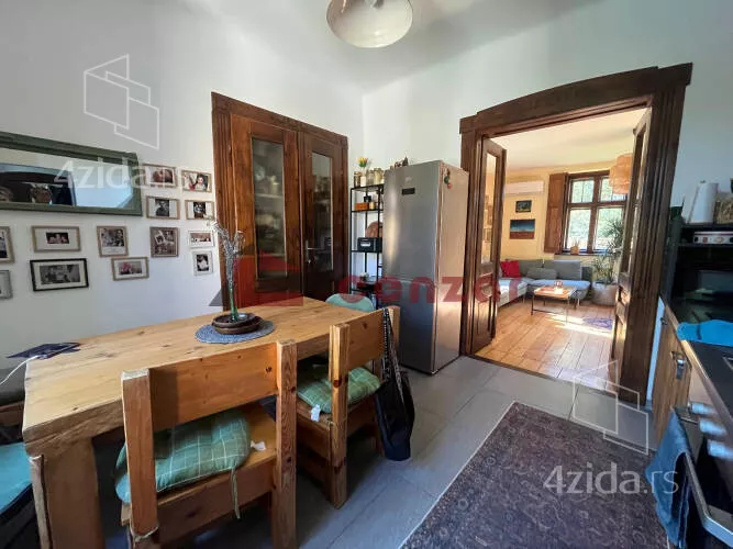 Prodaje se manja dvojna kuća u naselju Kervaroš površine 108m2.Poseduje otvoreni dnevni boravak gde se nalaze stepenice koje vode do spavaće sobe.Kuhinja i trpezarija su povezane sa dnevnim boravkom.Podovi su rađeni od seljačkog poda,unutrašnja stolarija izrađena je masivnog drveta.Vodovod i kanalizacija su gradska,struja trofazni priključak.Dvorište je potpuno ograđeno od komšija sa uređenim travnjakom i stazama.