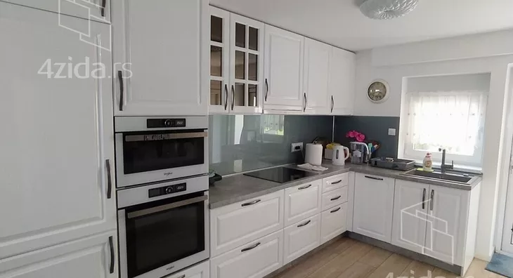 Dobro održavana spratna kuća od 287 m2, podeljena na dva stambena dela sa prelepim dvorištem na zajedničkoj parceli sa ciglenom ogradom sa pripadajućim zemljištem od 350 m2. Prizemlje se sastoji od velikog ulaznog hola, dnevnog boravka sa trpezarijom i kuhinjom, kupatila sa tušem, ostave i kotlarnice. Prvi sprat se sastoji od velikog dnevnog boravka, spavaće sobe i kupatila sa tušem. Drugi sprat se sastoji od hodnika, prostranog kupatila sa kadom i tri sobe. U dvorištu se nalazi lepa natkrivena veranda sa mestima za sedenje. Grejanje na gas i toplotnu pumpu, na podovima su parket, laminat i pločice, drveni i PVC prozori.