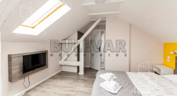 Na prodaju stambeno poslovni objekat u blizini Pravnog fakulteta,250m2, na placu od 1,6 ari. Objekat se sastoji od deset soba, maksimalnog kapaciteta 25 osoba. Sobe su po strukturi dvokrevetne, trokrevetne i četvorokrevetne. Svaka soba poseduje kupatilo, klima uređaj, mini frižider, led tv, kuvalo i propratno posuđe. Objekat ima zajedničku perionicu i trpezariju sa kuhinjom. U potpunosti je opremljen i pogodan je kako za život u delu objekta, tako i za izdavanje. Nalazi u mirnoj ulici, u neposrednoj blizini centralne gradske zone, Pravnog i Ekonomskog fakulteta, Fznra, Difa. Objekat je u radu, sa ocenom na Bookingu 9.3. Zbog svoje lokacije, pogodan je za privatni studentski ili učenički dom, predstavništvo firmi, hostel. Uknjižen je, vlasništvo 1 kroz 1, moguća kupovina putem stambenog kredita. Ovo je samo deo naše ponude, za više informacija, stojimo vam na raspolaganju.