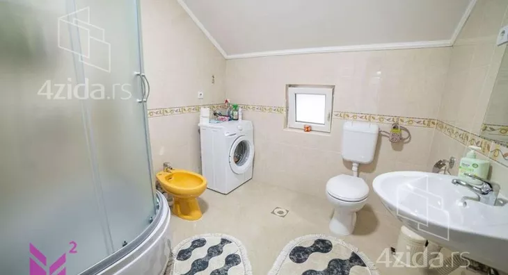 Ova lepa kuća u osnovi ima 10x9 m2,poseduje dva nivoa;sređeno prizemlje namešteno kvalitetnim nameštajem I Boš tehnikom,2 sobe,svetao I velik dnevni boravak sa kuhinjom i trpezarijom, predsoblje I kupatilo u kojem se nalazi kotao za centralno grejanje kojim je kuća opremljena. Na spratu se nalaze četiri sobe,kupatilo I sanitarni čvor kao I dve terase.